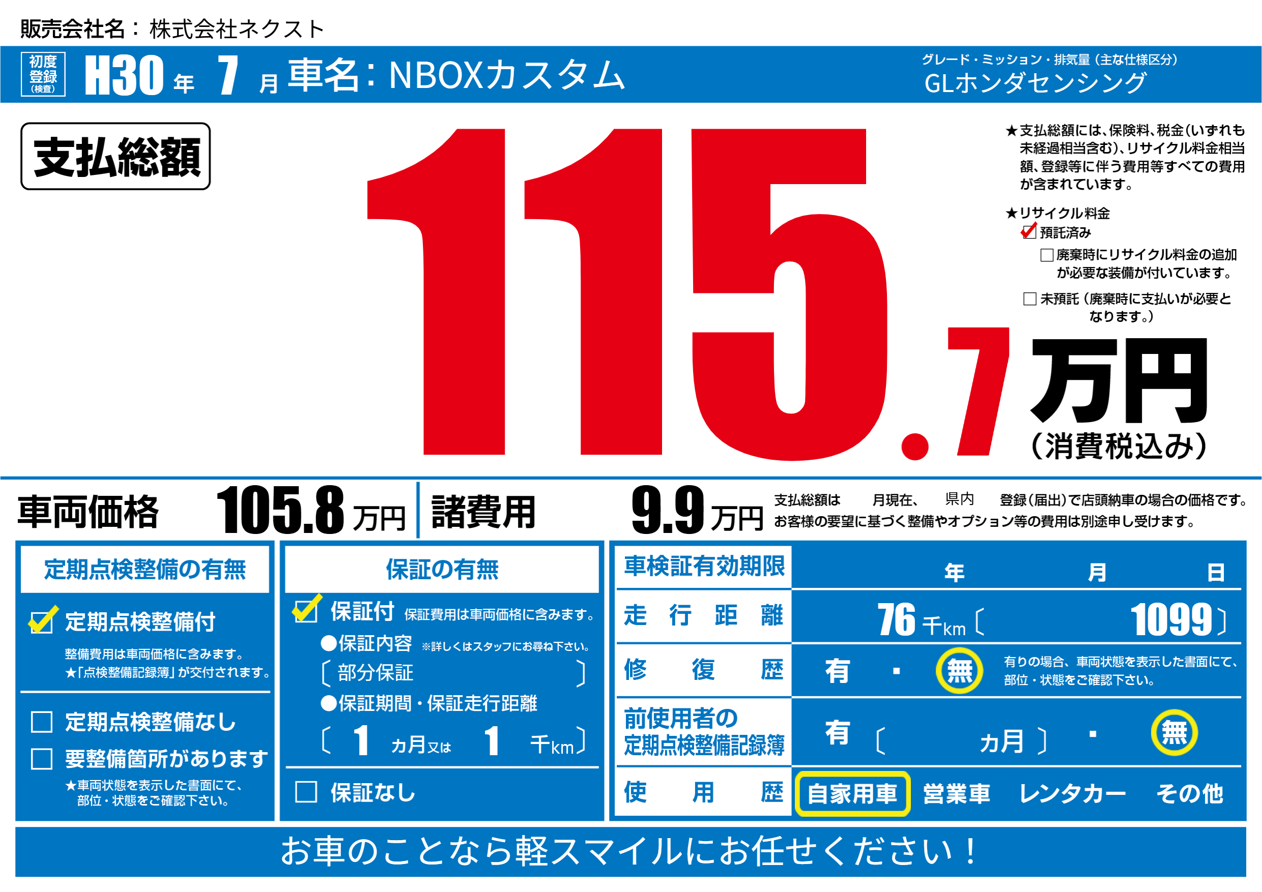 | 走行キロ | 7.6万km | ||