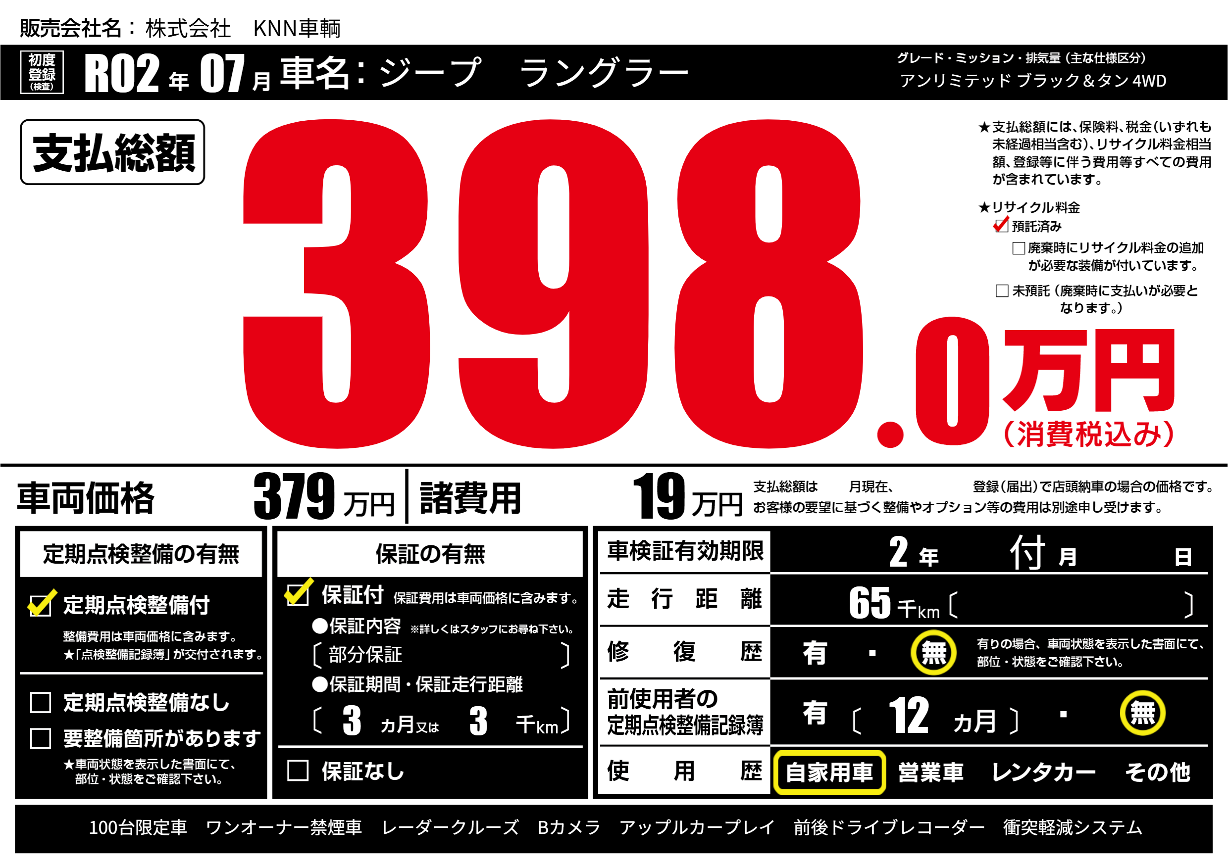 なし | 車検制限 | 2年付月---月 |