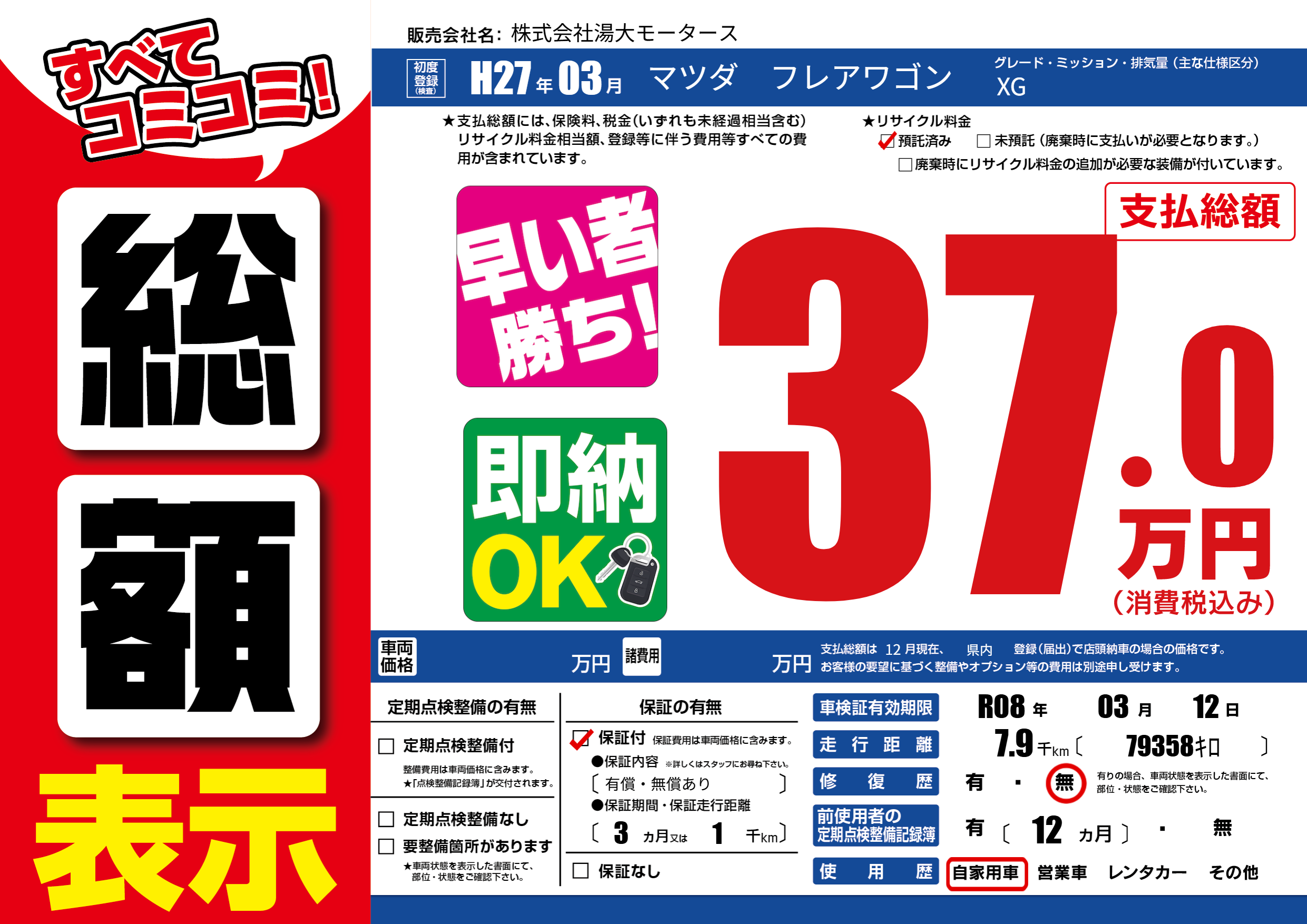 | 車検制限 | R08年 03月 12日 | ||