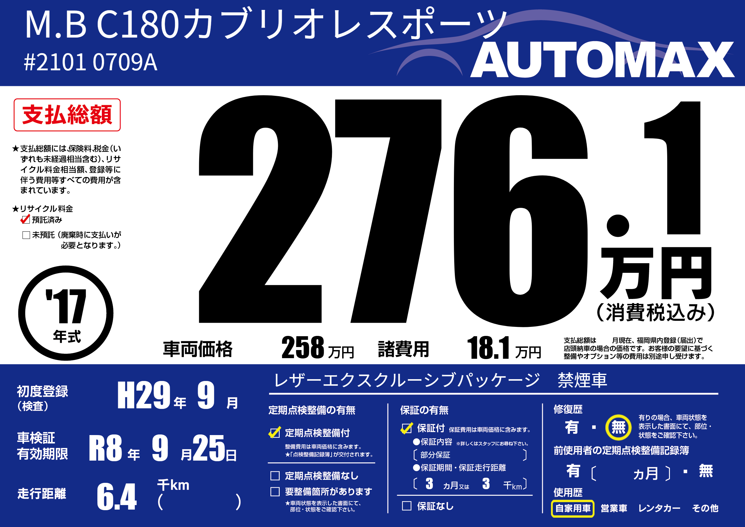 | 車検制限 | R8年 9月 25日 | ||
