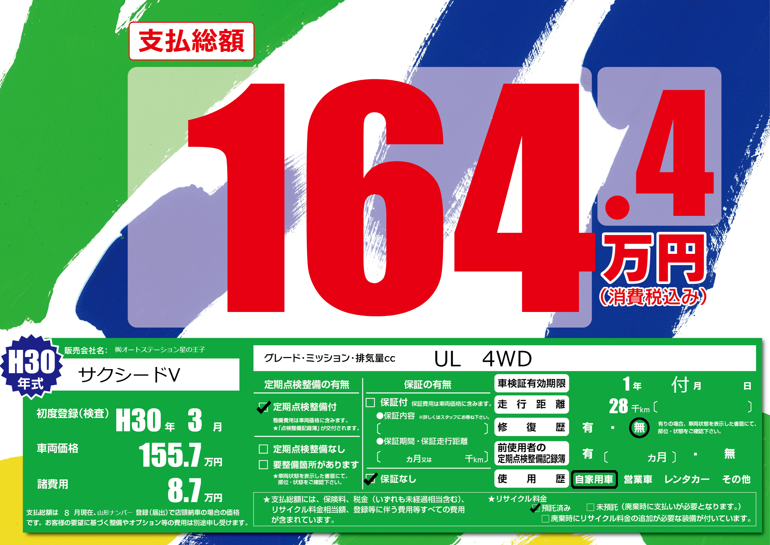 | 車名 | サクシードV | グレード ミッション 排気量 |