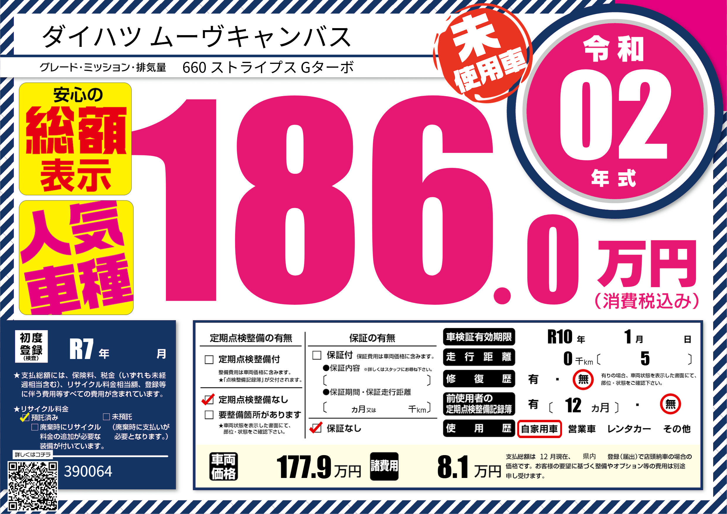 | 車検制限 | R10年 1月 - 日 | ||