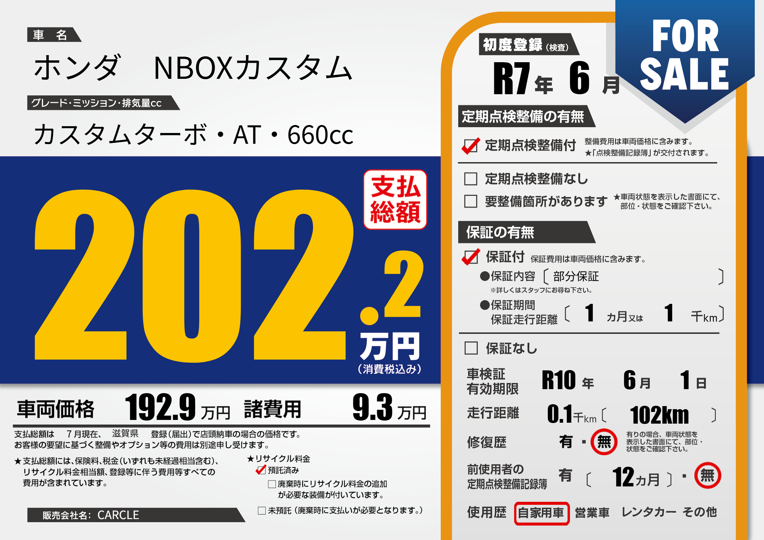 | 走行キロ | - | 初年度登録 | R7年6月 |