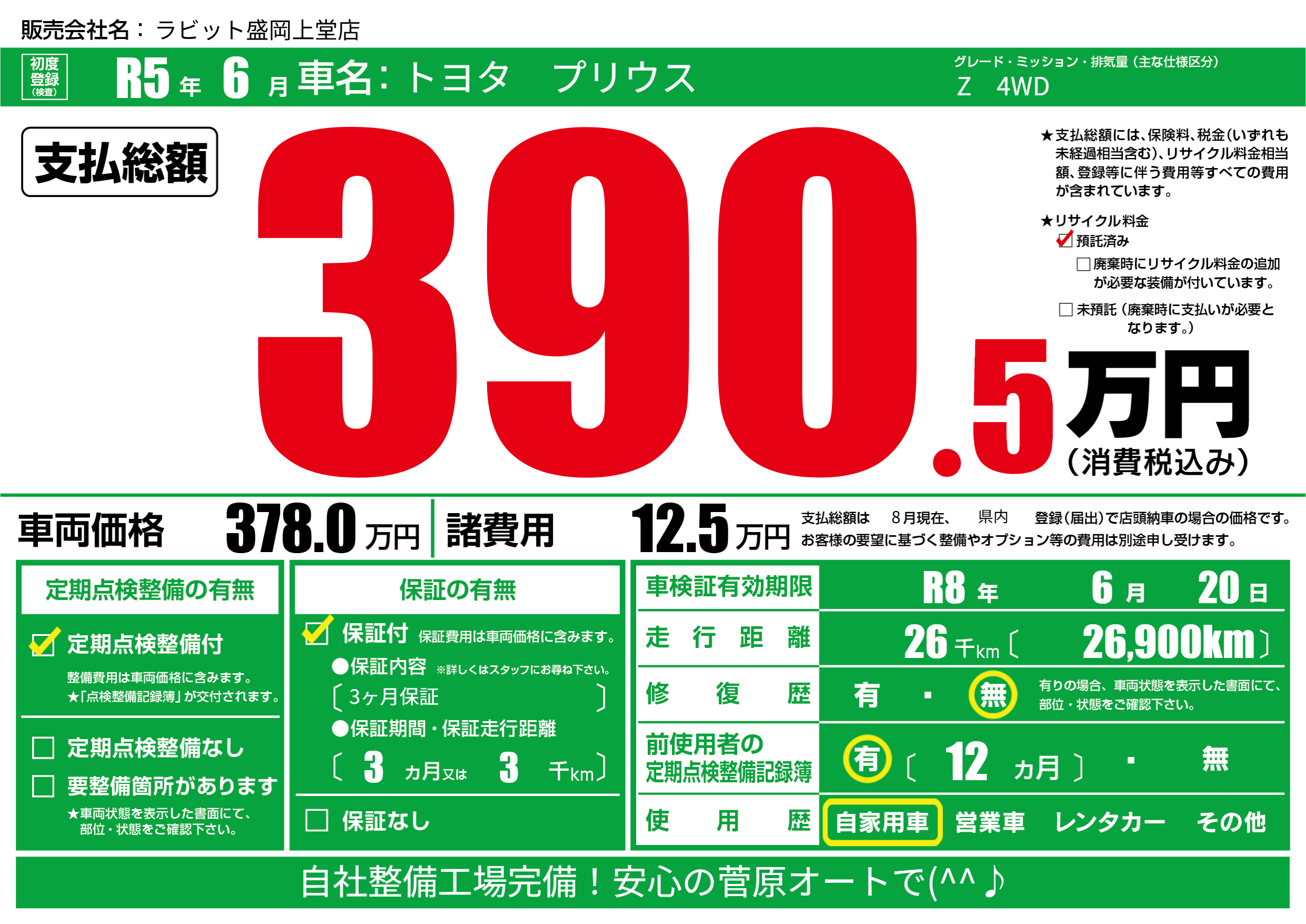 | 車名 | トヨタ プリウス | グレード ミッション 排気量 |