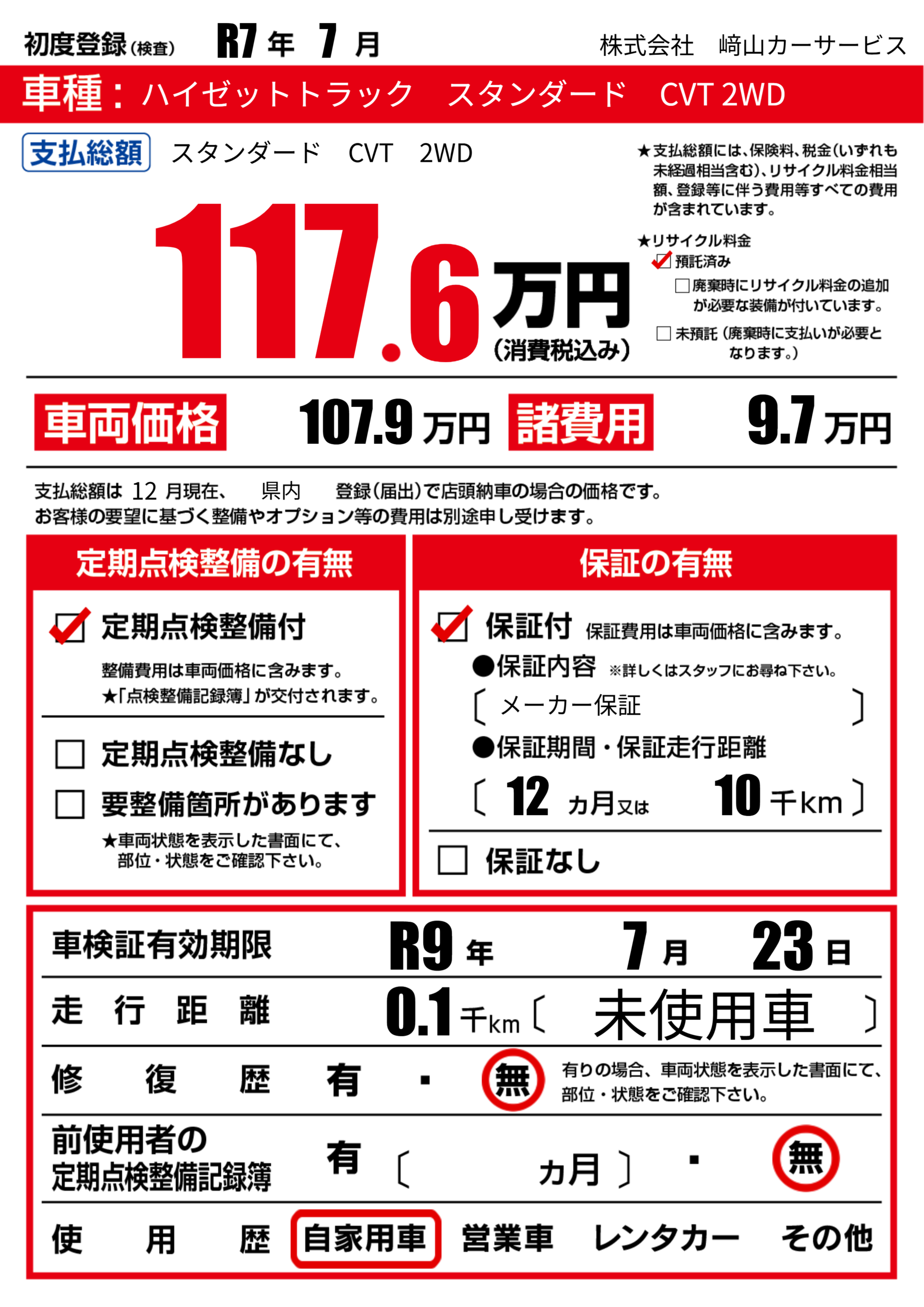 なし | 車検制限 | R9年7月23月 |