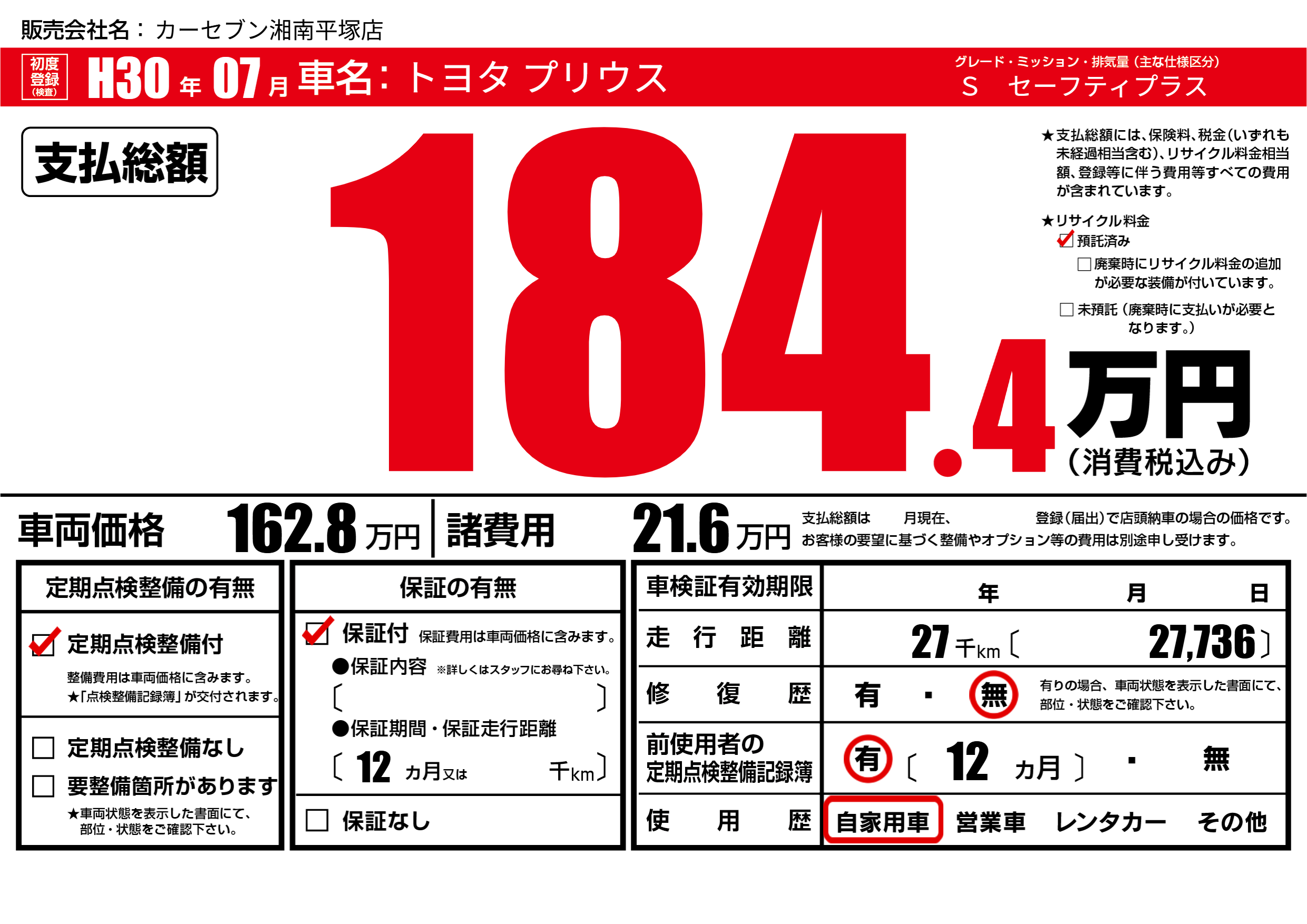 | 定期点検整備 | 定期点検整備あり | ||