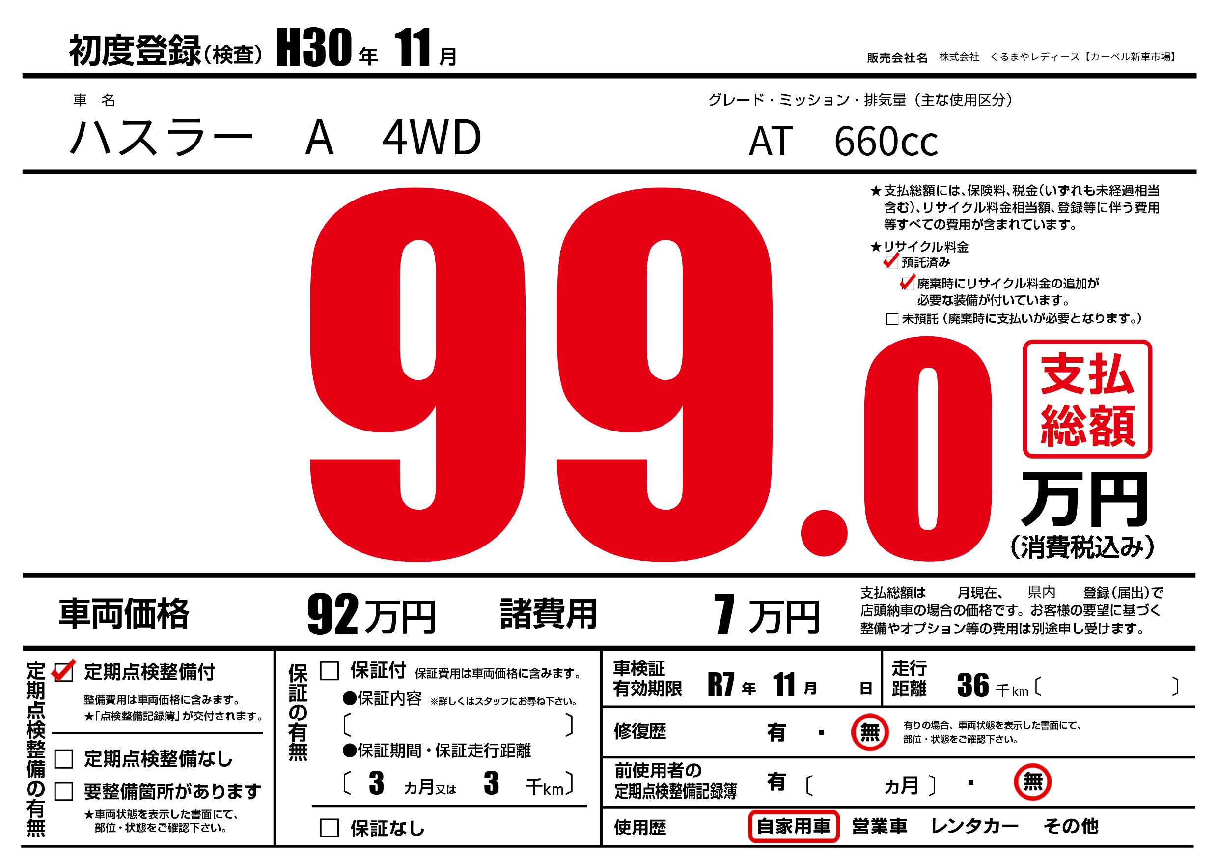 | 初年度登録 | H30年11月 | ||
