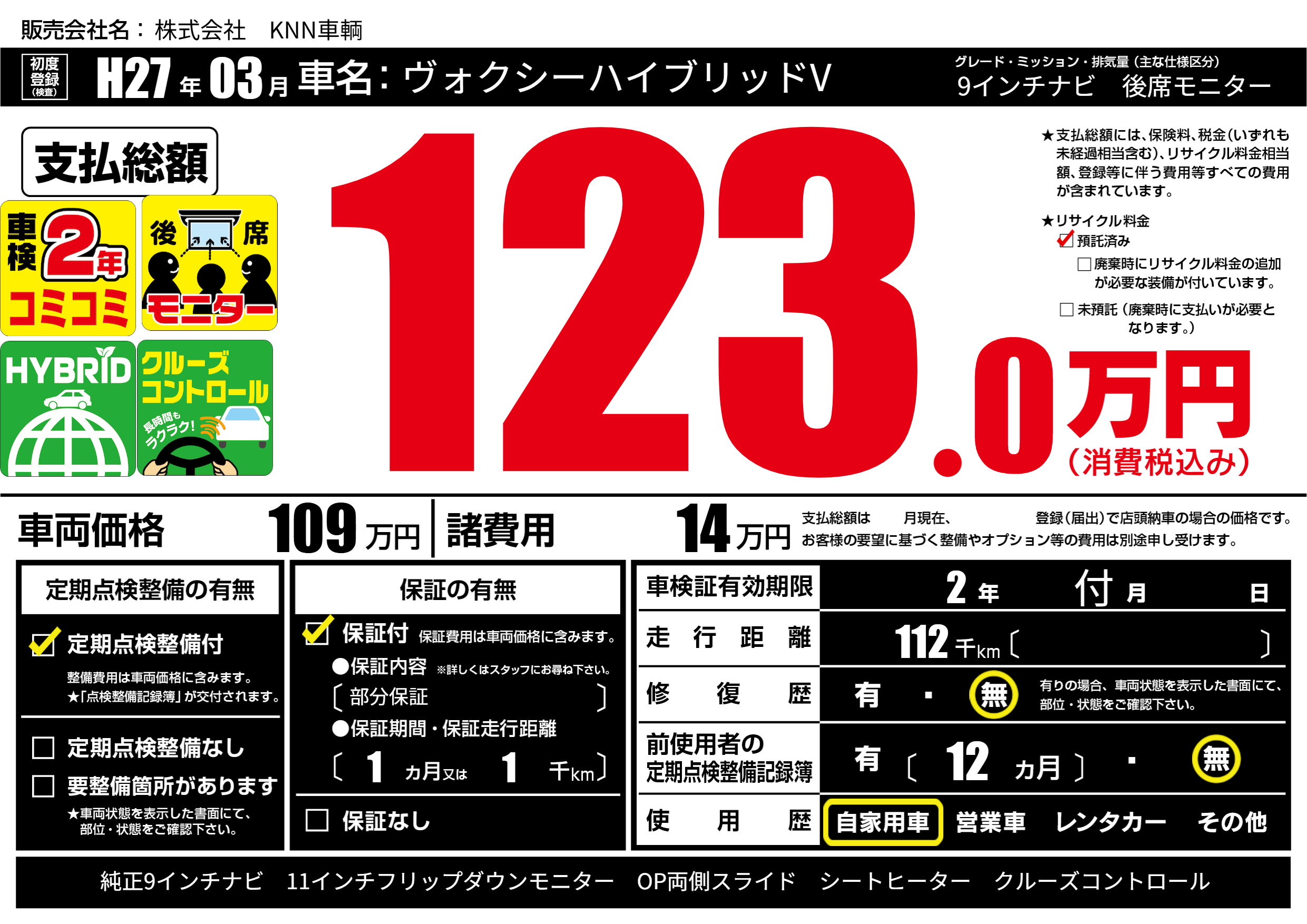 | 走行キロ | 11.2万km | 初年度登録 | H27年03月 |