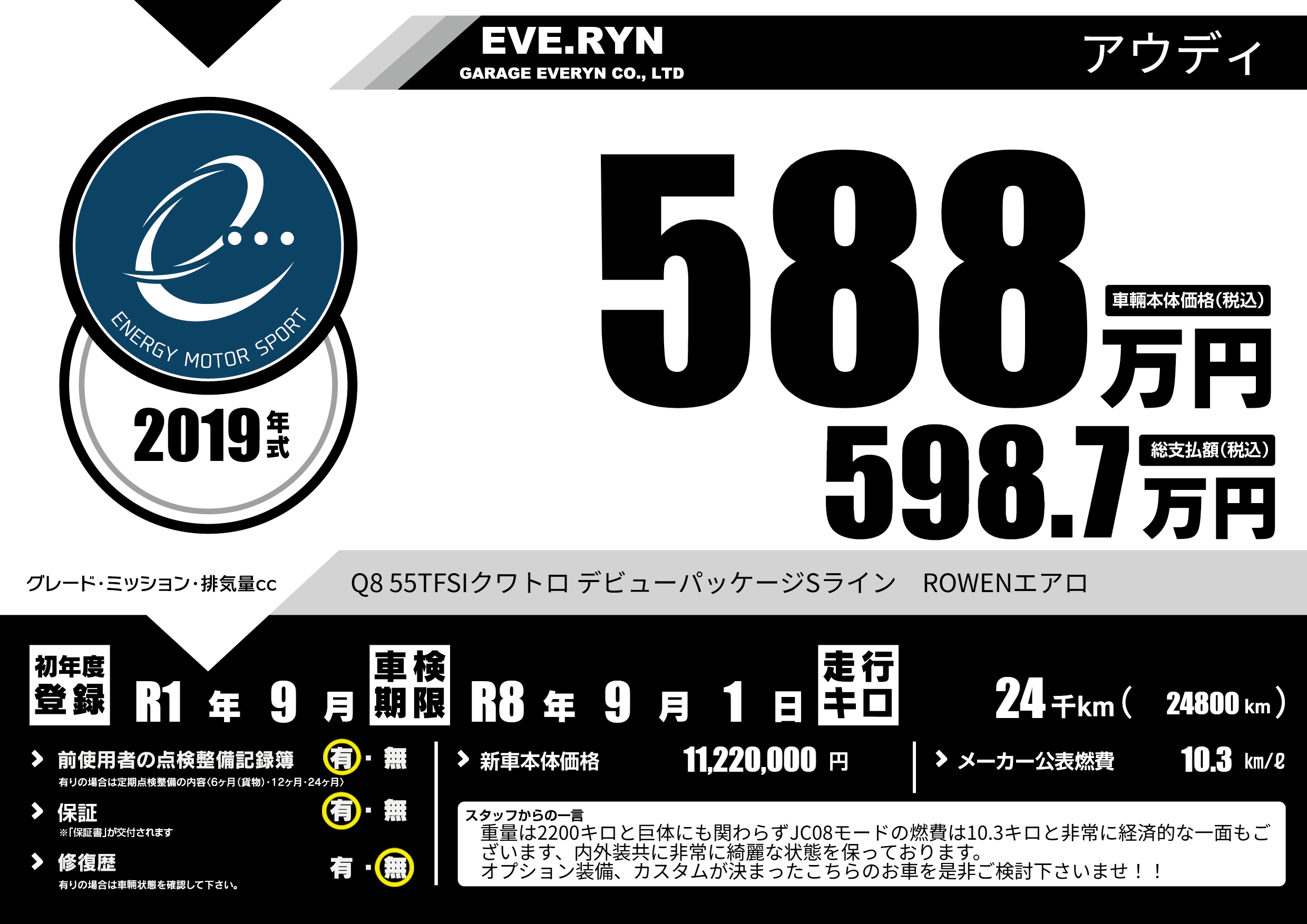 Q8 55TFSIクワトロ デビューパッケージSライン ROWENエアロ |