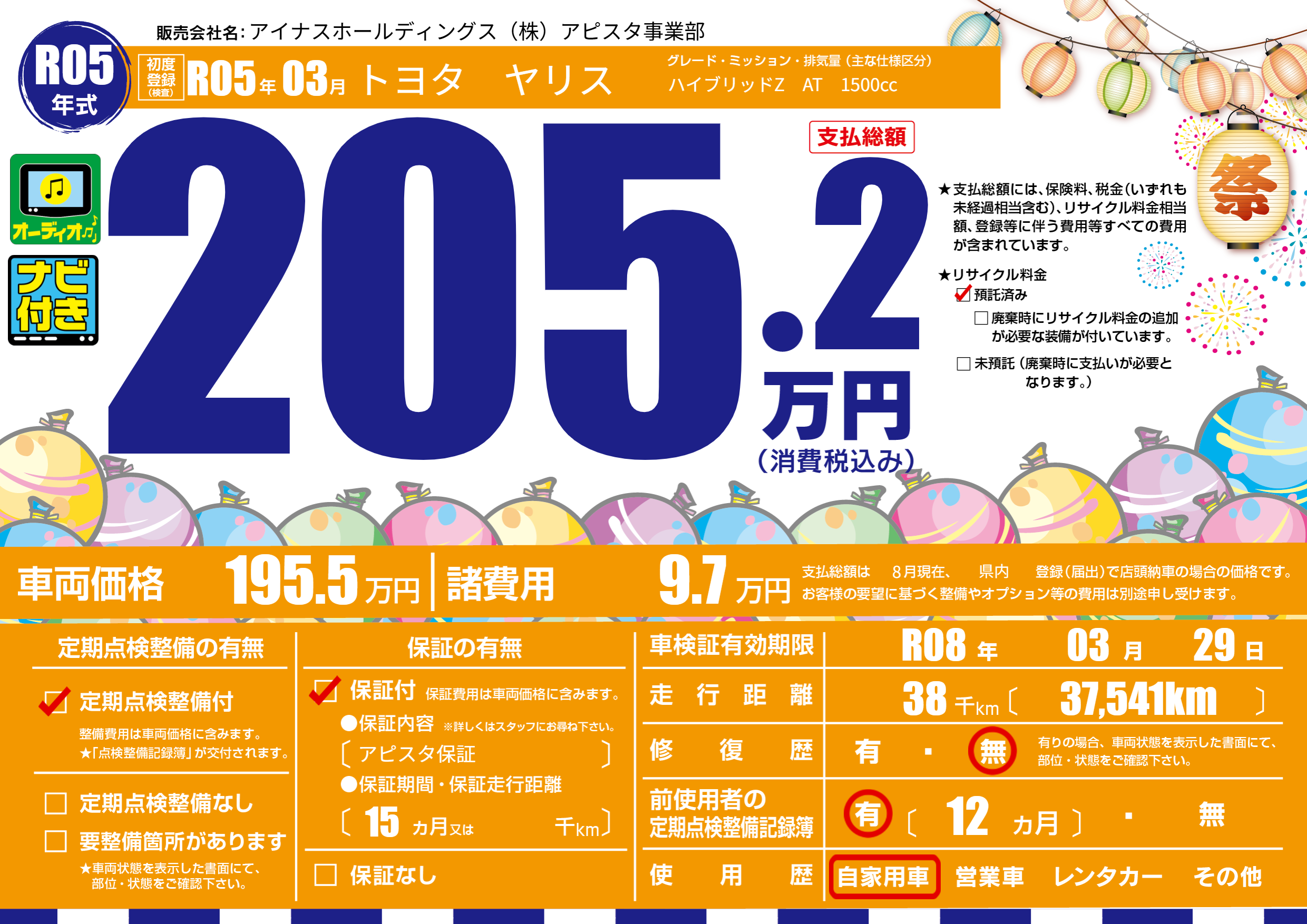 | 走行キロ | 3.8万km | 初年度登録 | R05年03月 |