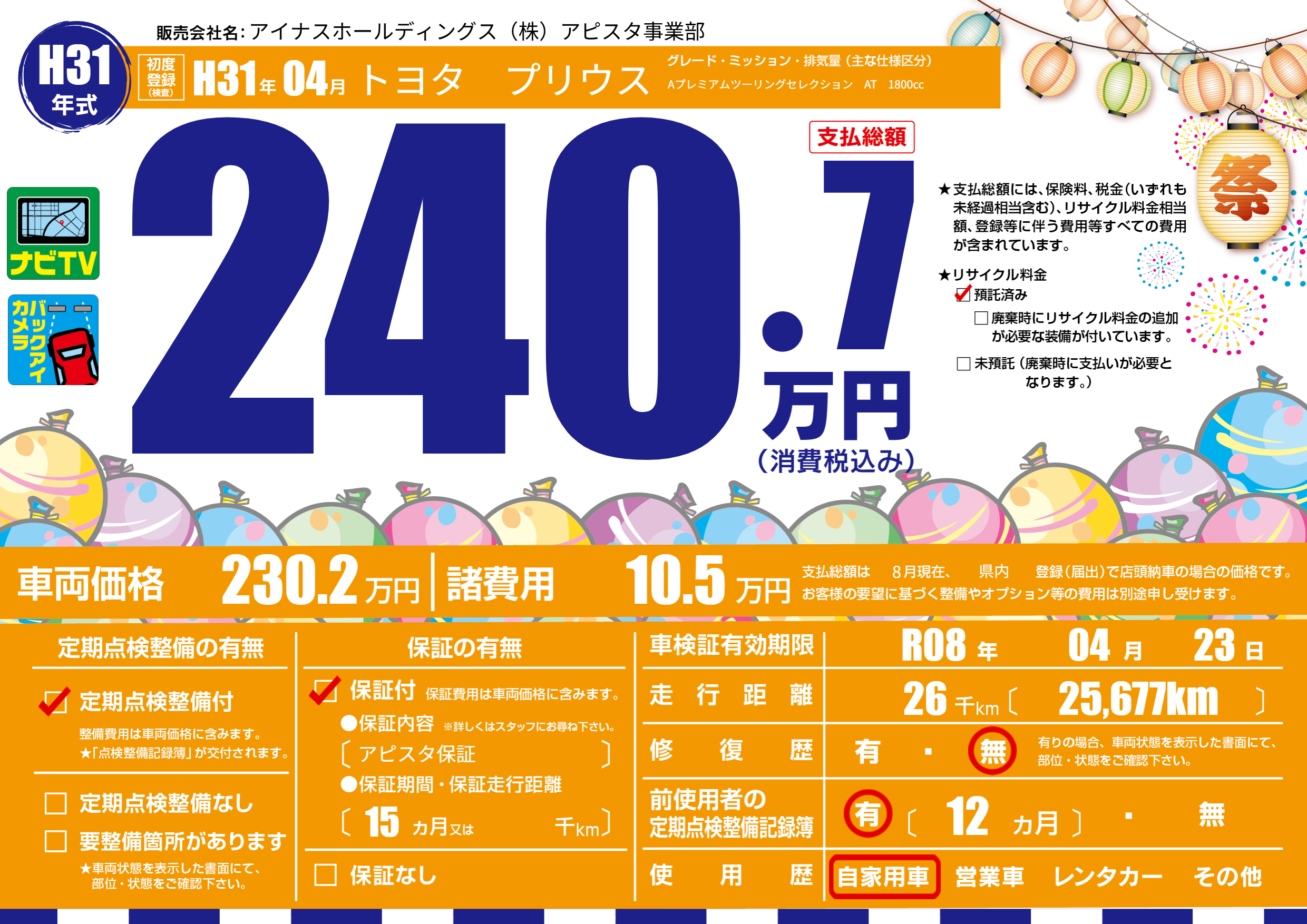 保証付き 保証内容(アピスタ保証) 15ヶ月または()千kmまで |