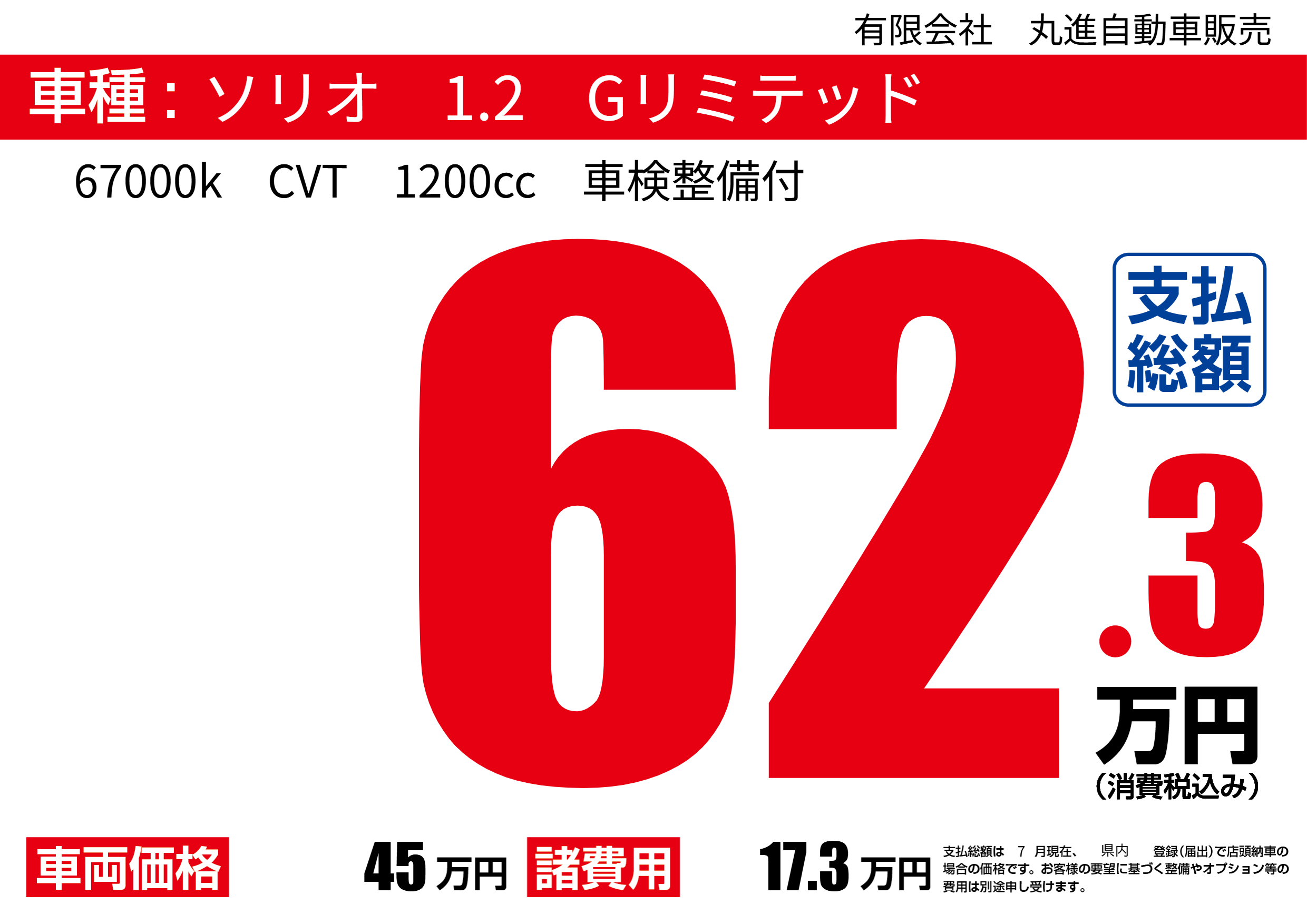 | 車名 | ソリオ 1.2 Gリミテッド | グレード ミッション 排気量 |