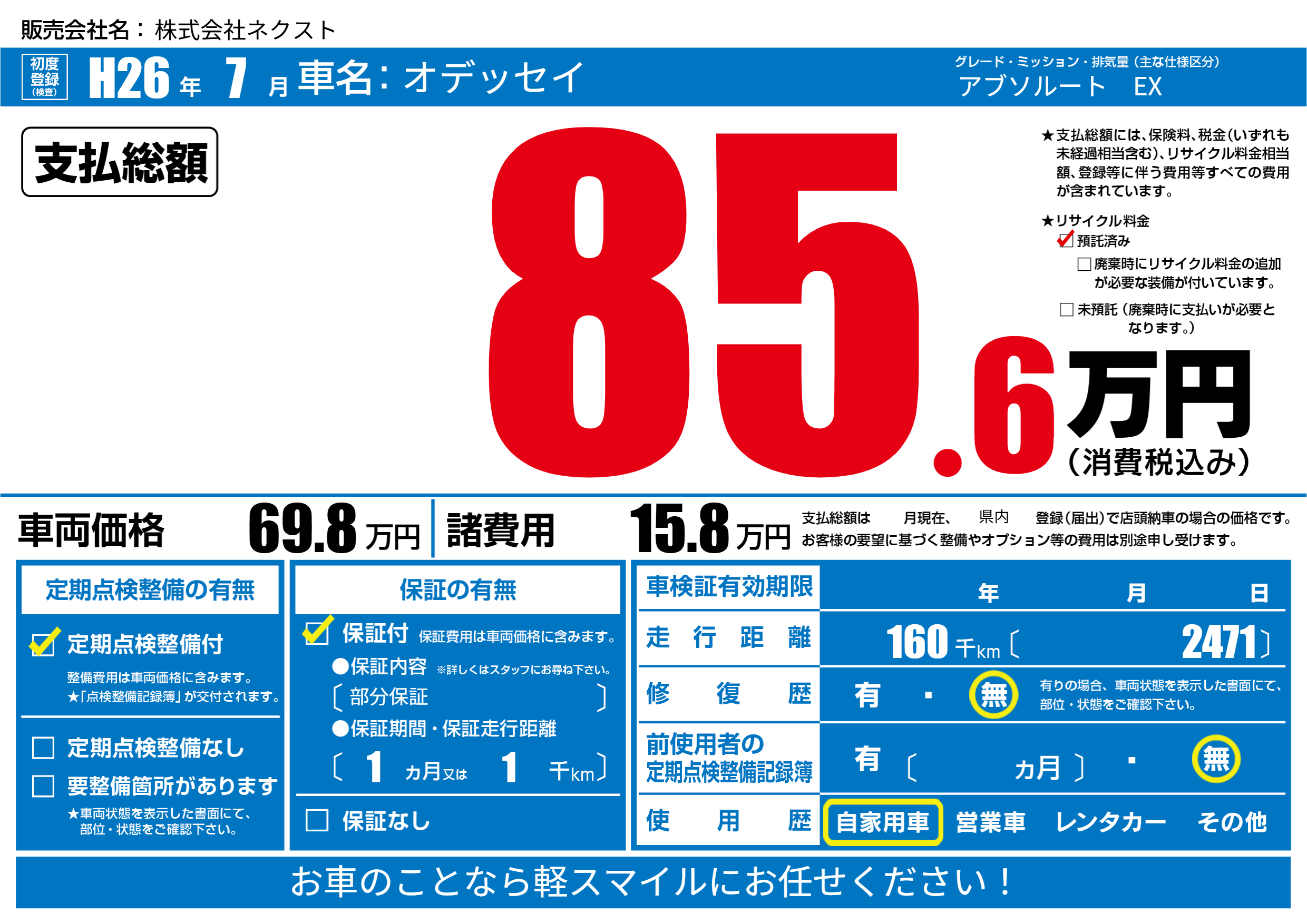 | 定期点検整備 | 定期点検整備あり | ||