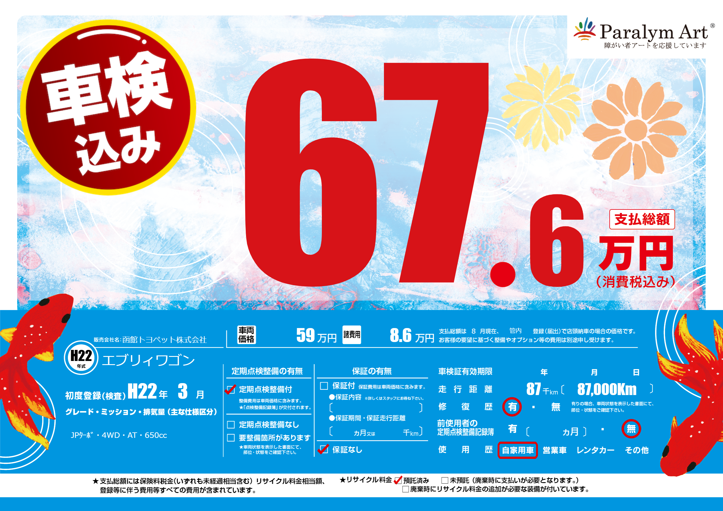| 車名 | エブリィワゴン | グレード ミッション 排気量 |