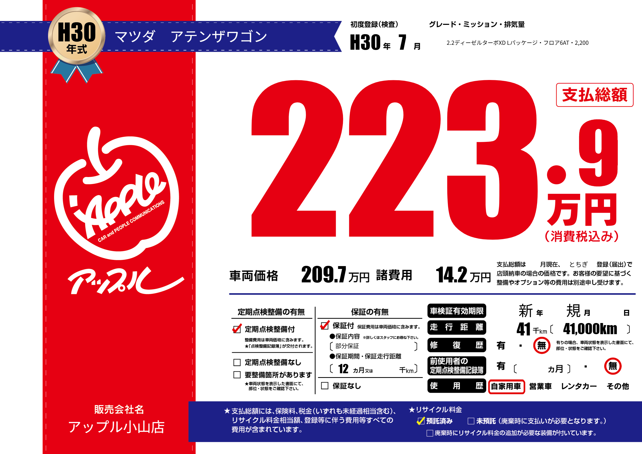 | 走行キロ | 4.1万km | 初年度登録 | H30年7月 |