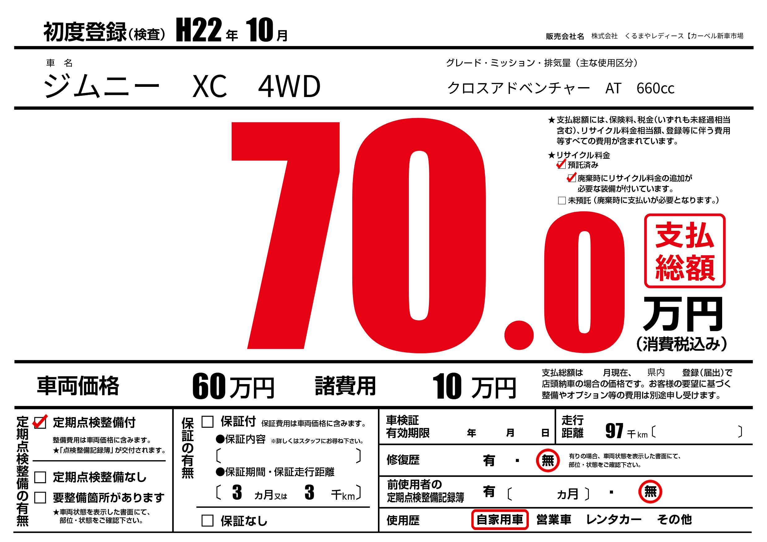 | 初年度登録 | H22年10月 | ||