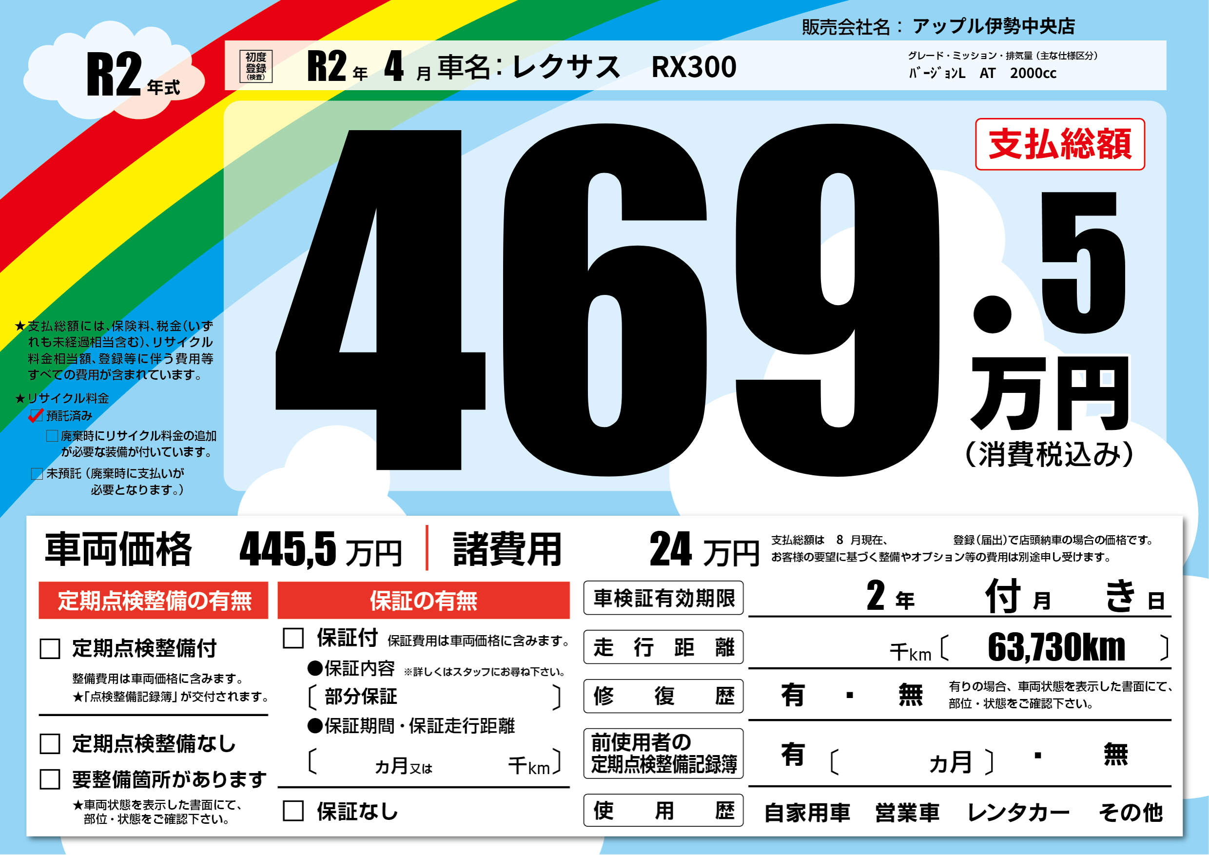 なし | 車検制限 | 2年付月き月 |