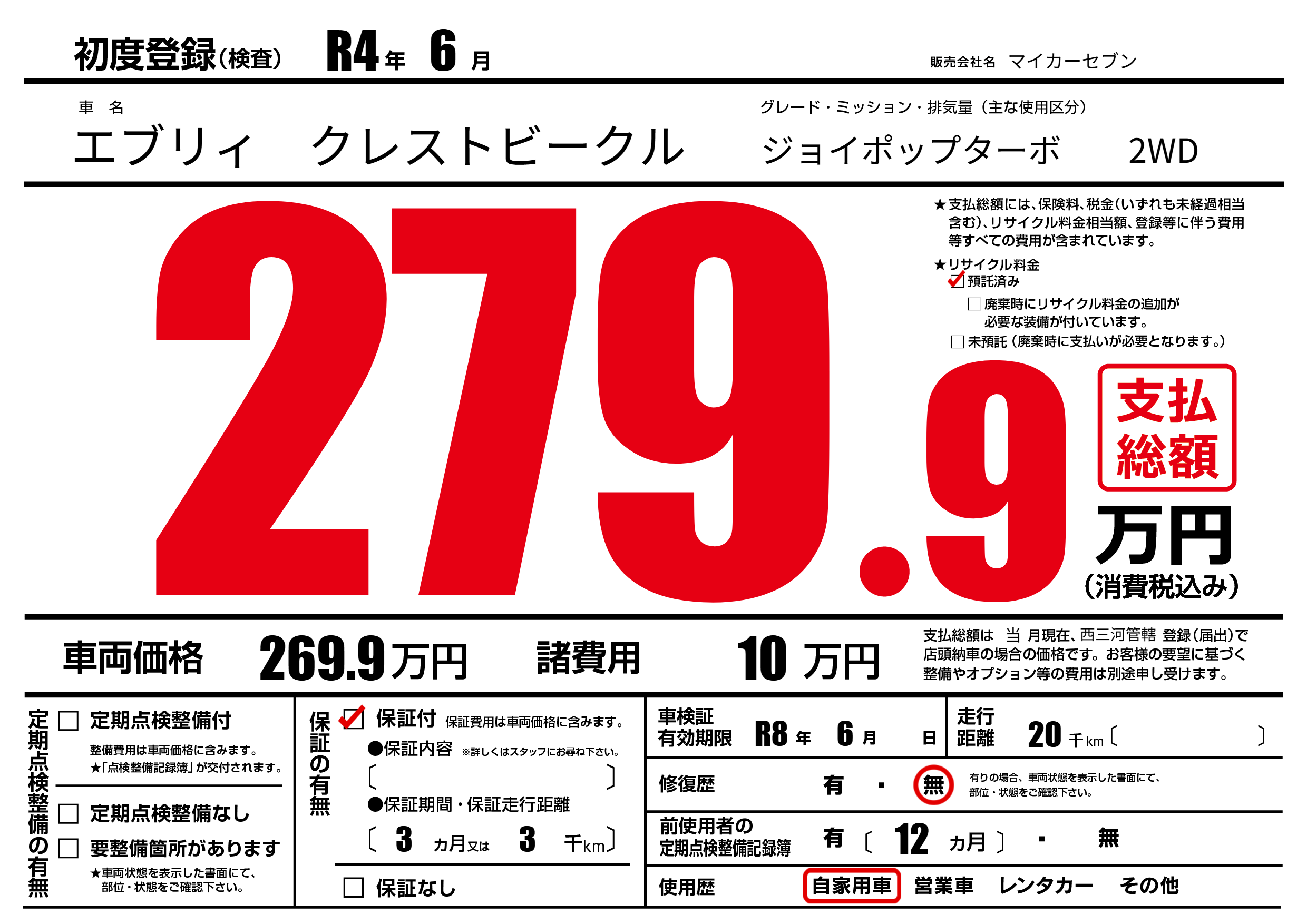 なし | 車検制限 | R8年6月---月 |