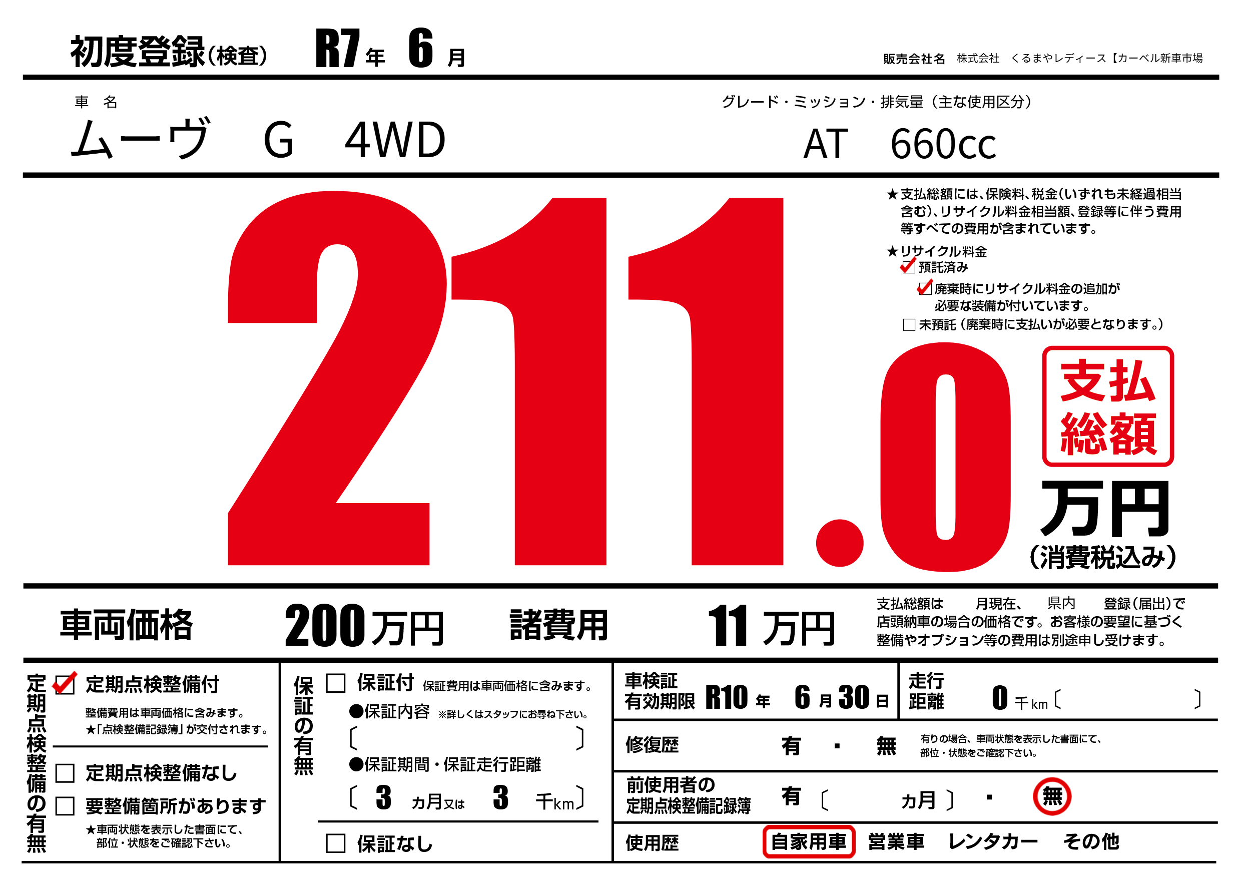 | 走行キロ | - | 初年度登録 | R7年6月 |