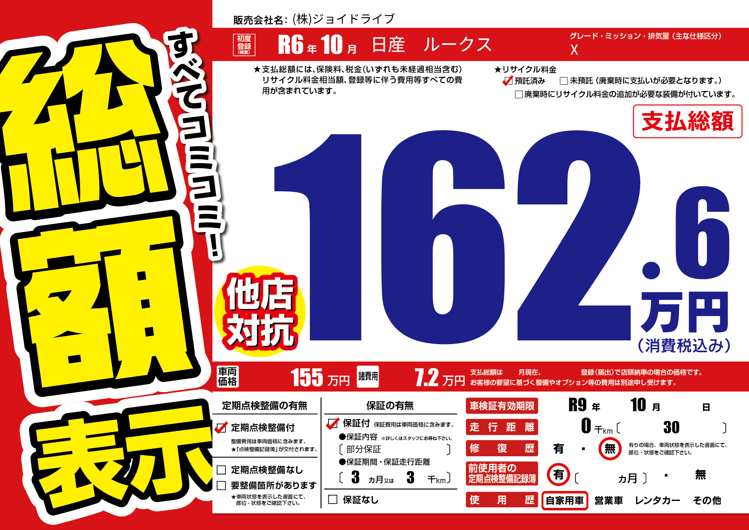 | 走行キロ | - | 初年度登録 | R6年10月 |
