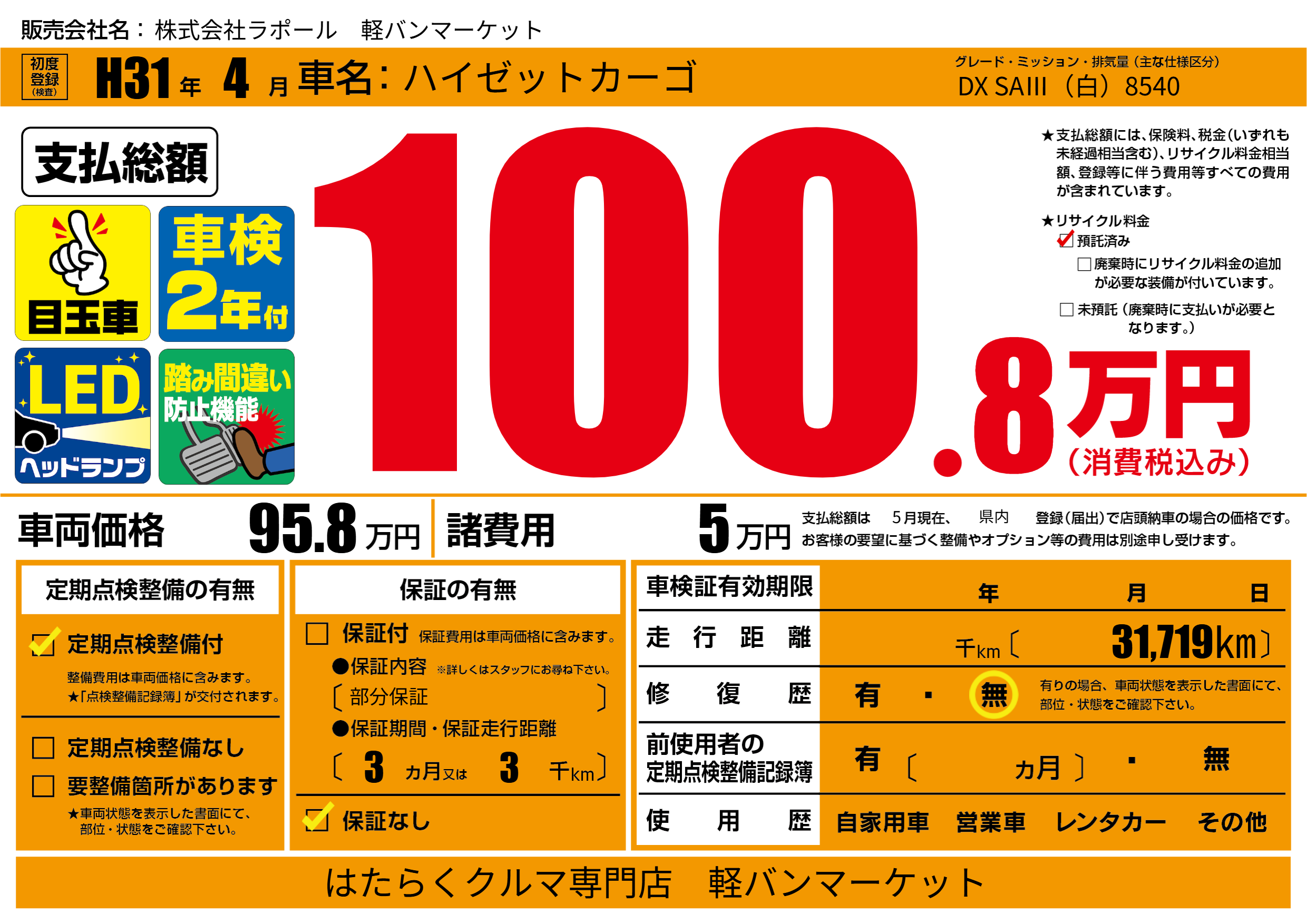 | 初年度登録 | H31年4月 | ||
