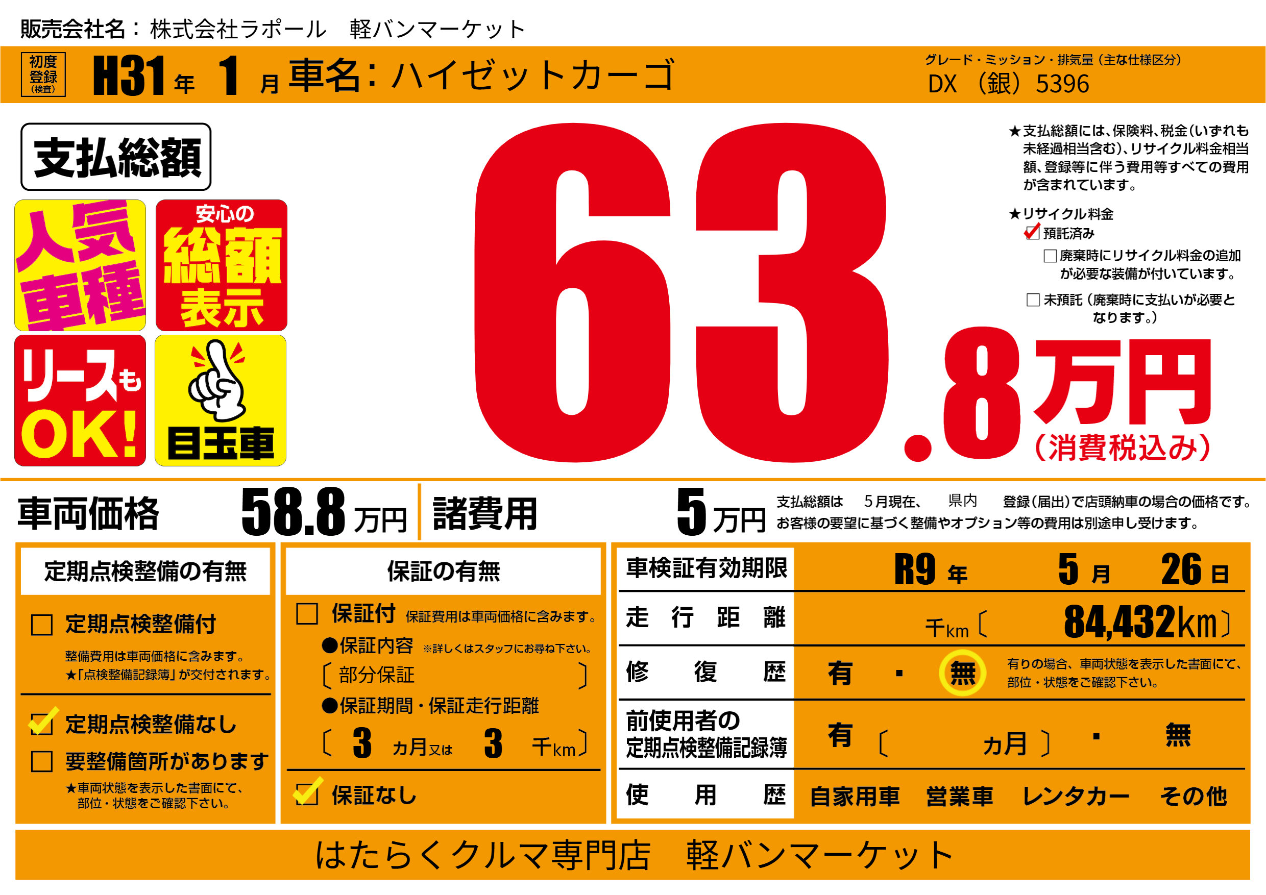 株式会社ラポール 軽バンマーケットの展示車