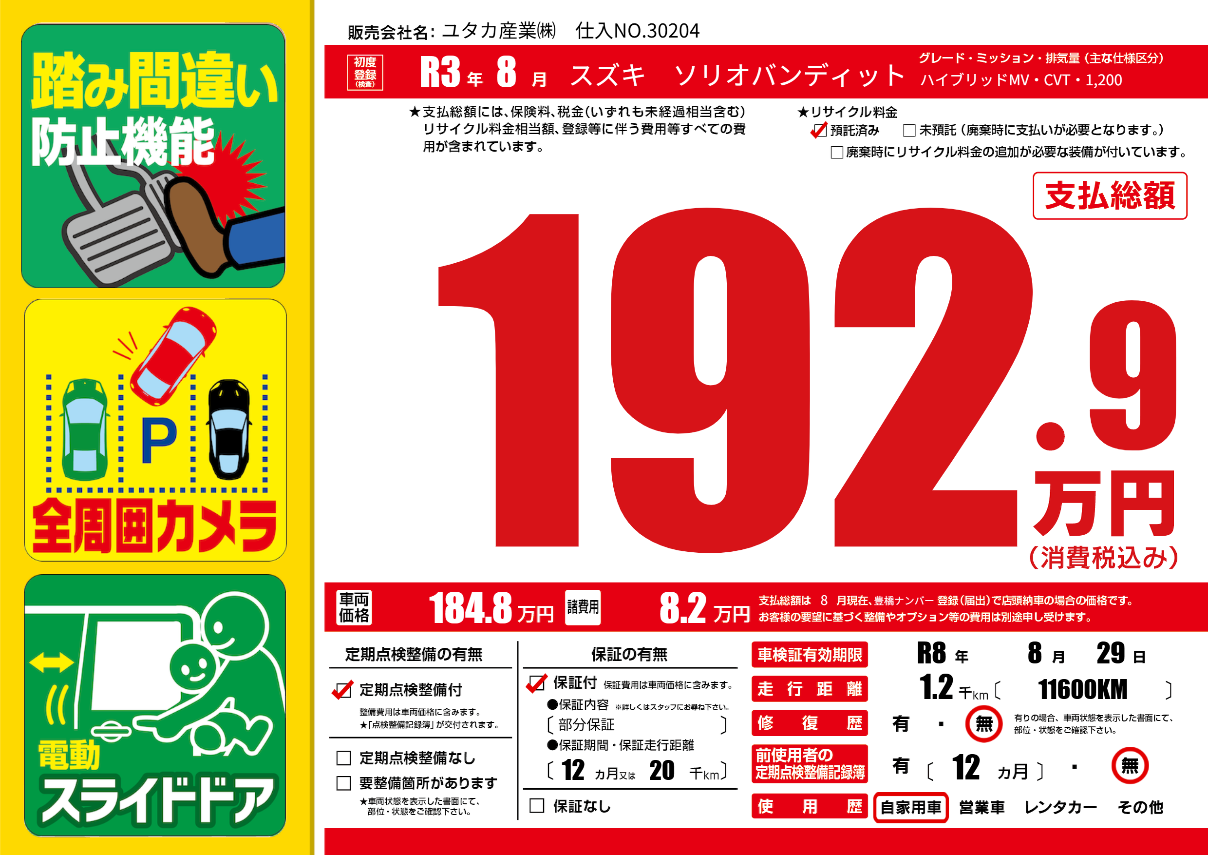 保証付き 保証内容(部分保証) 12ヶ月または(20)千kmまで |