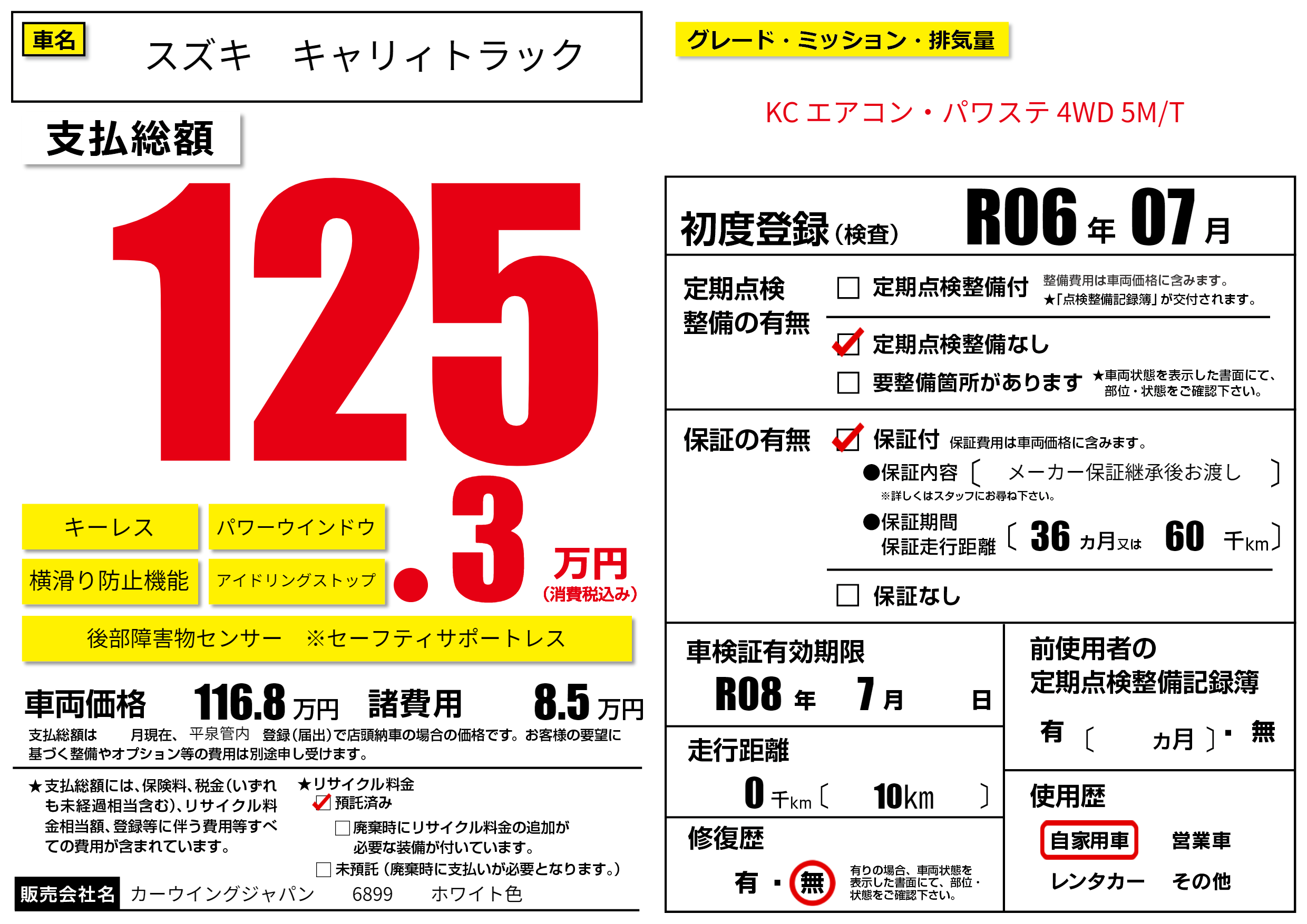 | 走行キロ | - | 初年度登録 | R06年07月 |