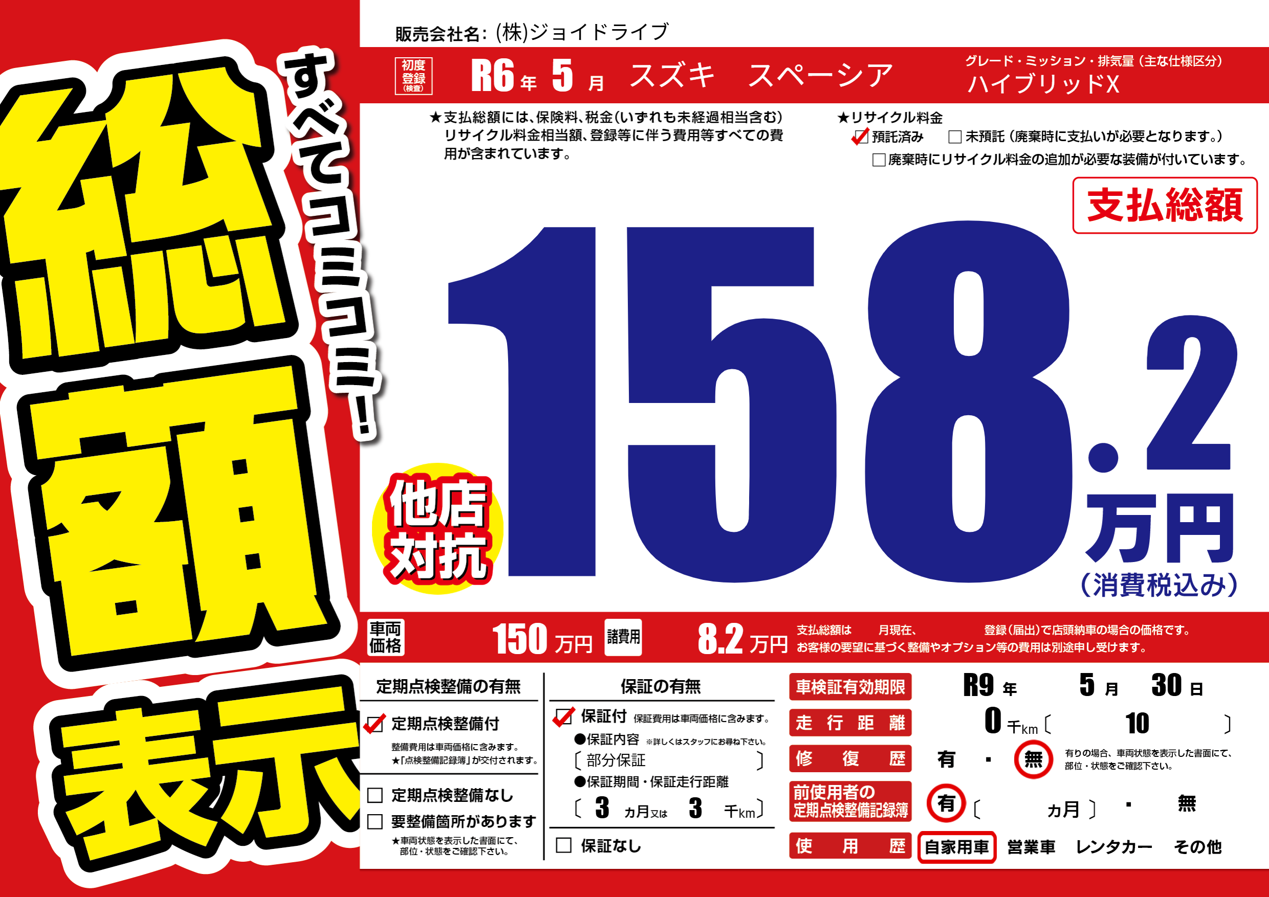 | 走行キロ | - | 初年度登録 | R6年5月 |