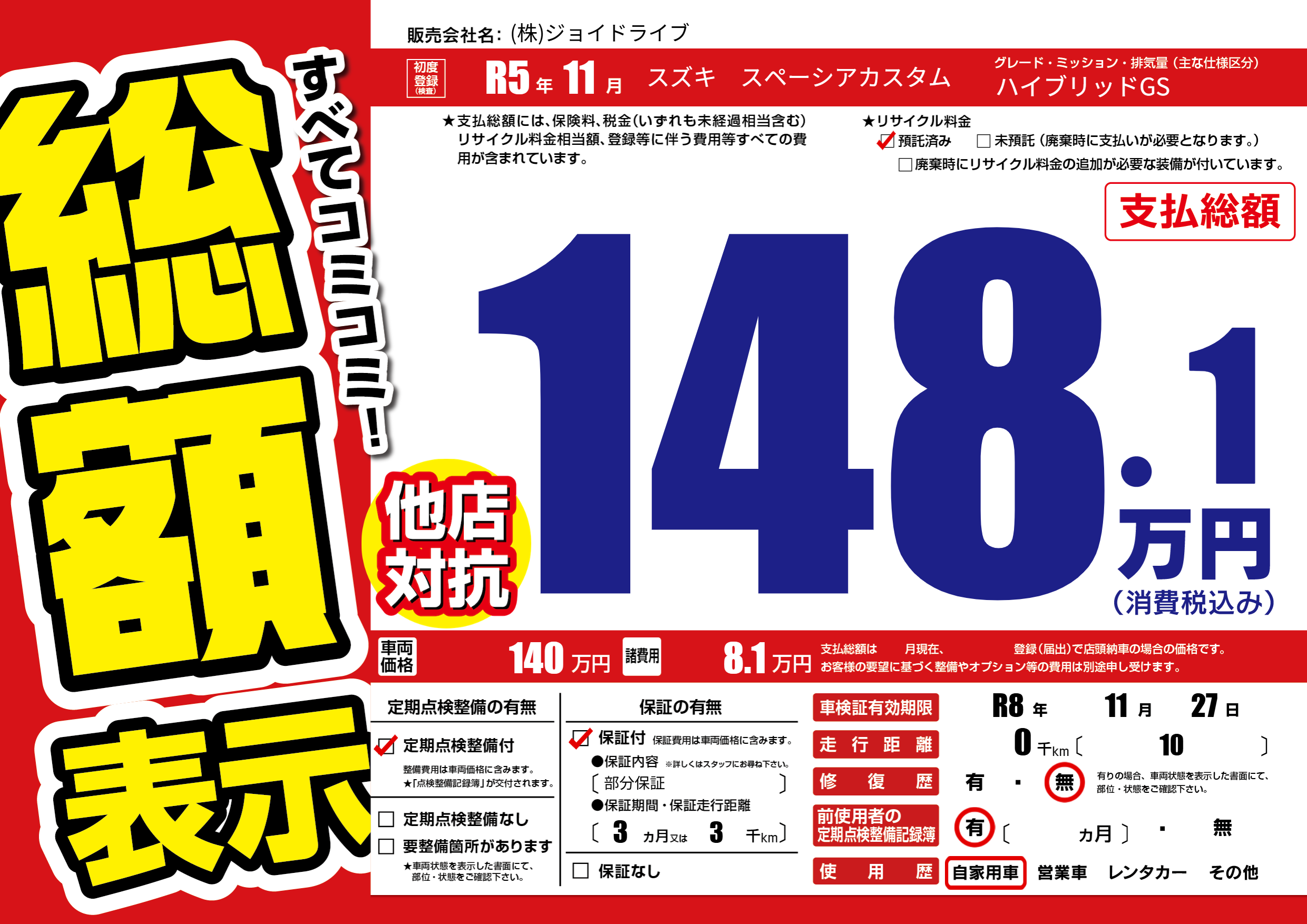 なし | 車検制限 | R8年11月27月 |