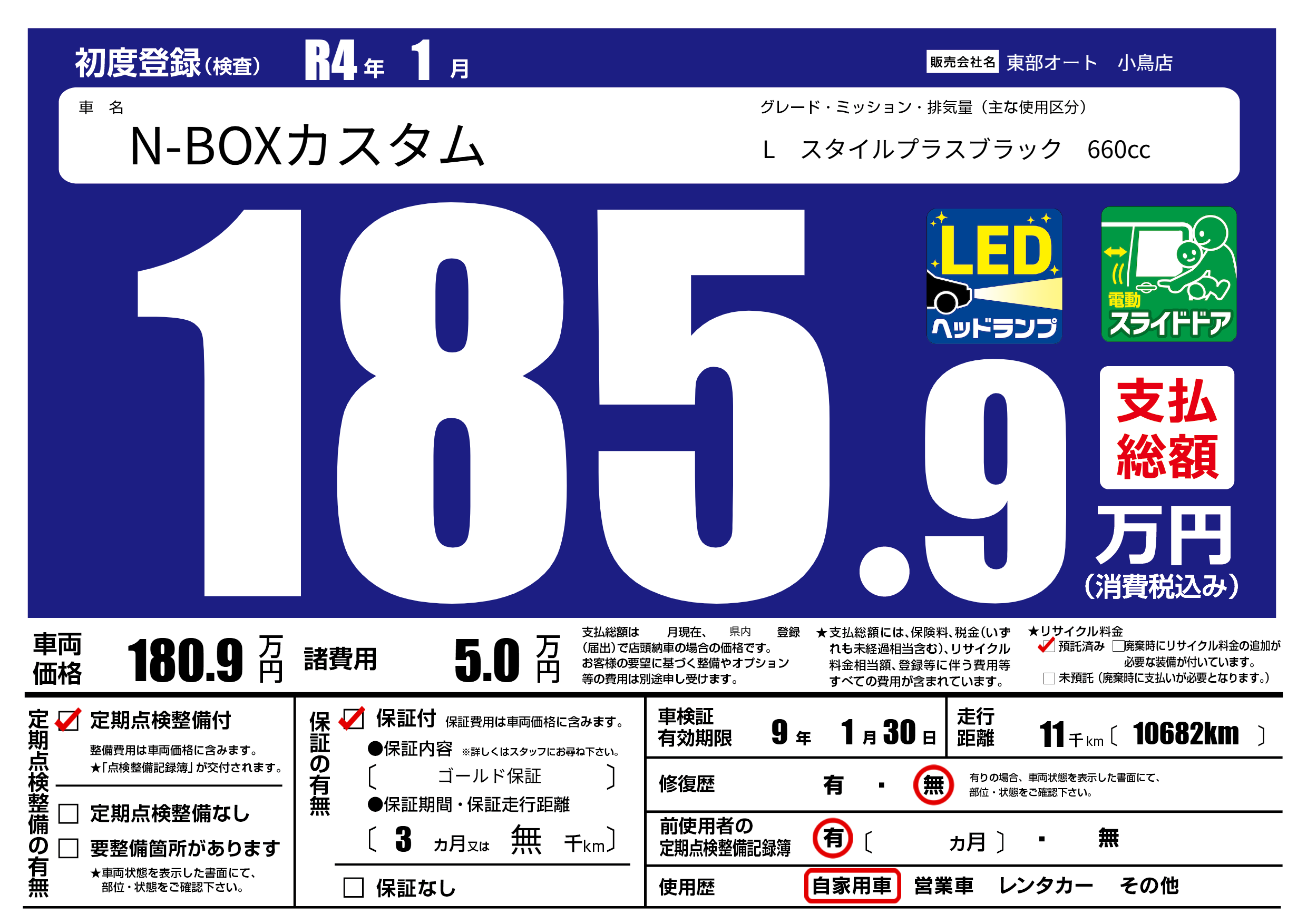 | 走行キロ | 1.1万km | 初年度登録 | R4年1月 |