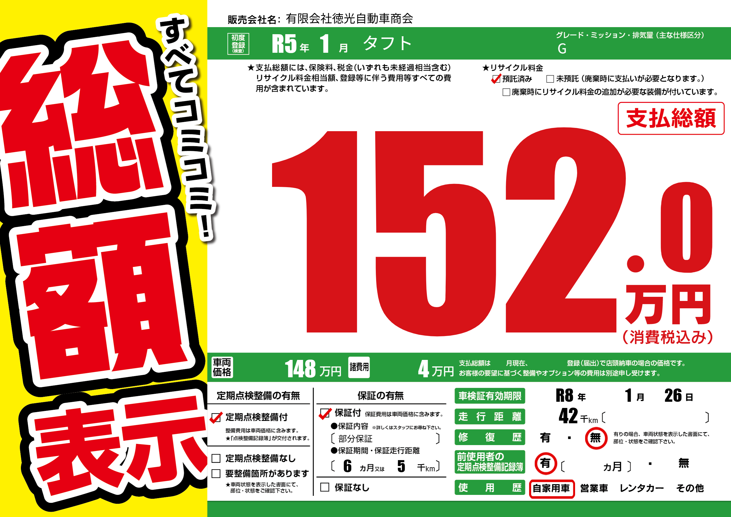 | 走行キロ | 4.2万km | 初年度登録 | R5年1月 |