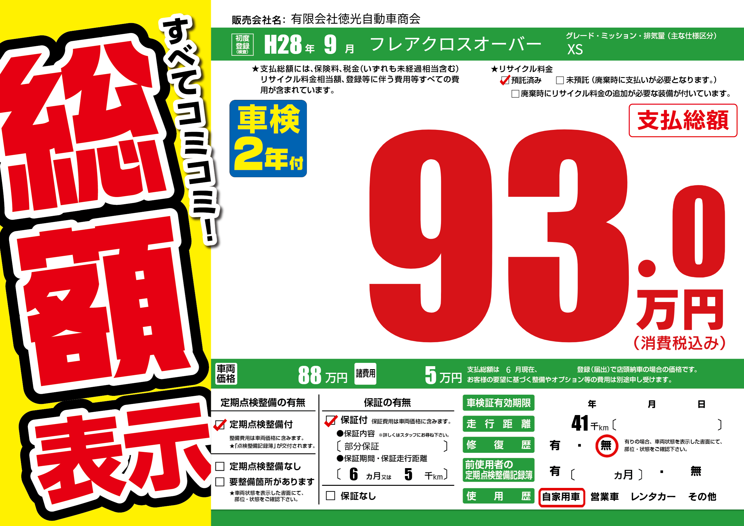 | 走行キロ | 4.1万km | 初年度登録 | H28年9月 |