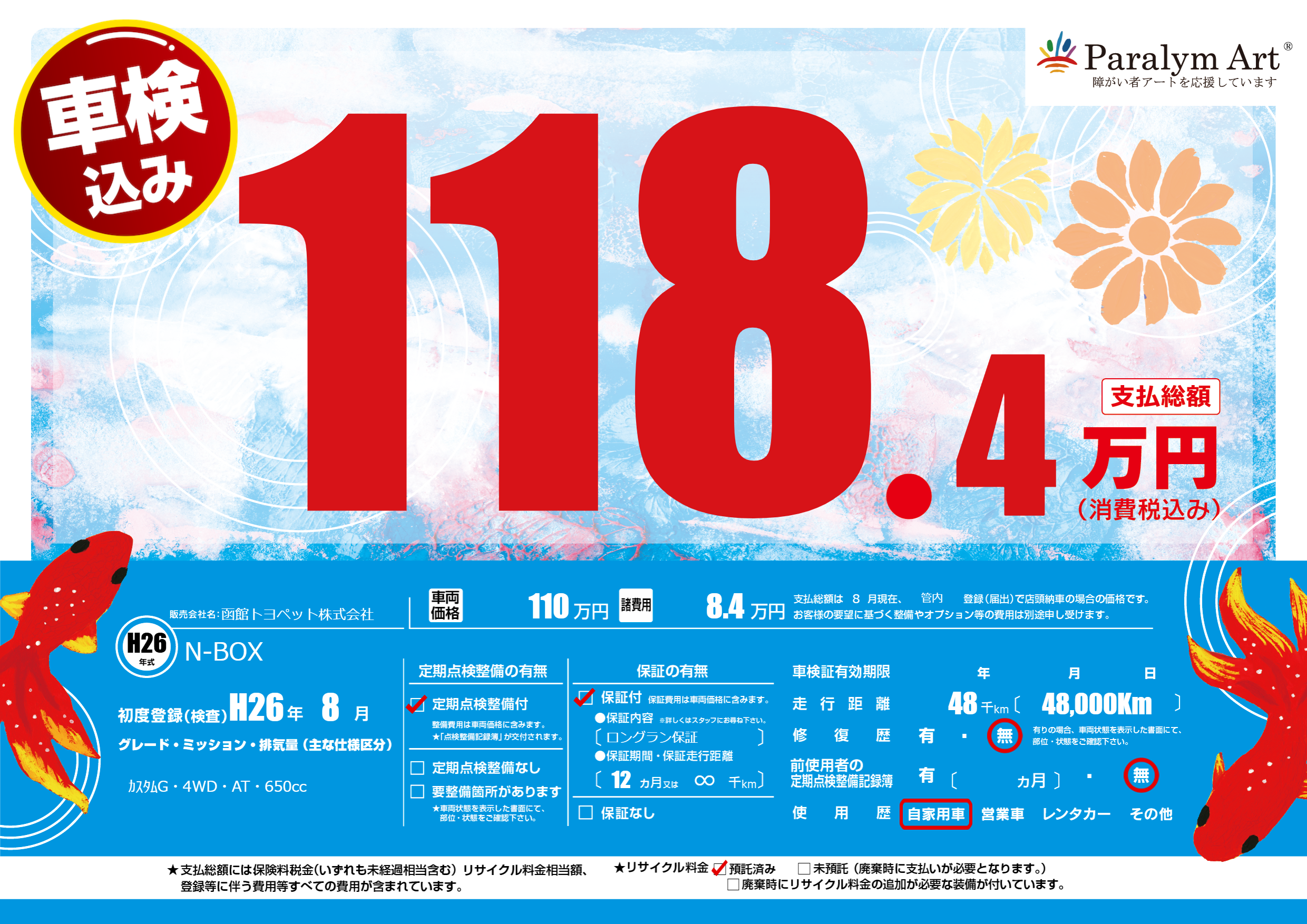 | 走行キロ | 4.8万km | 初年度登録 | H26年8月 |