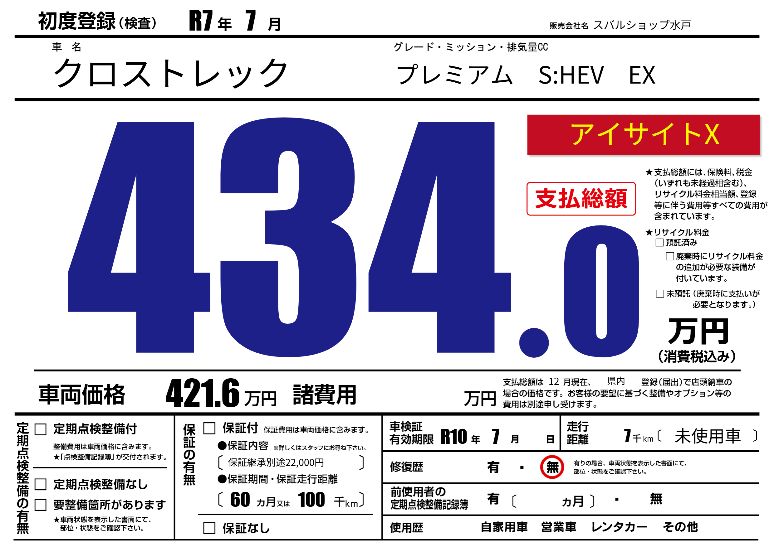 | 車名 | クロストレック | グレード ミッション 排気量 |