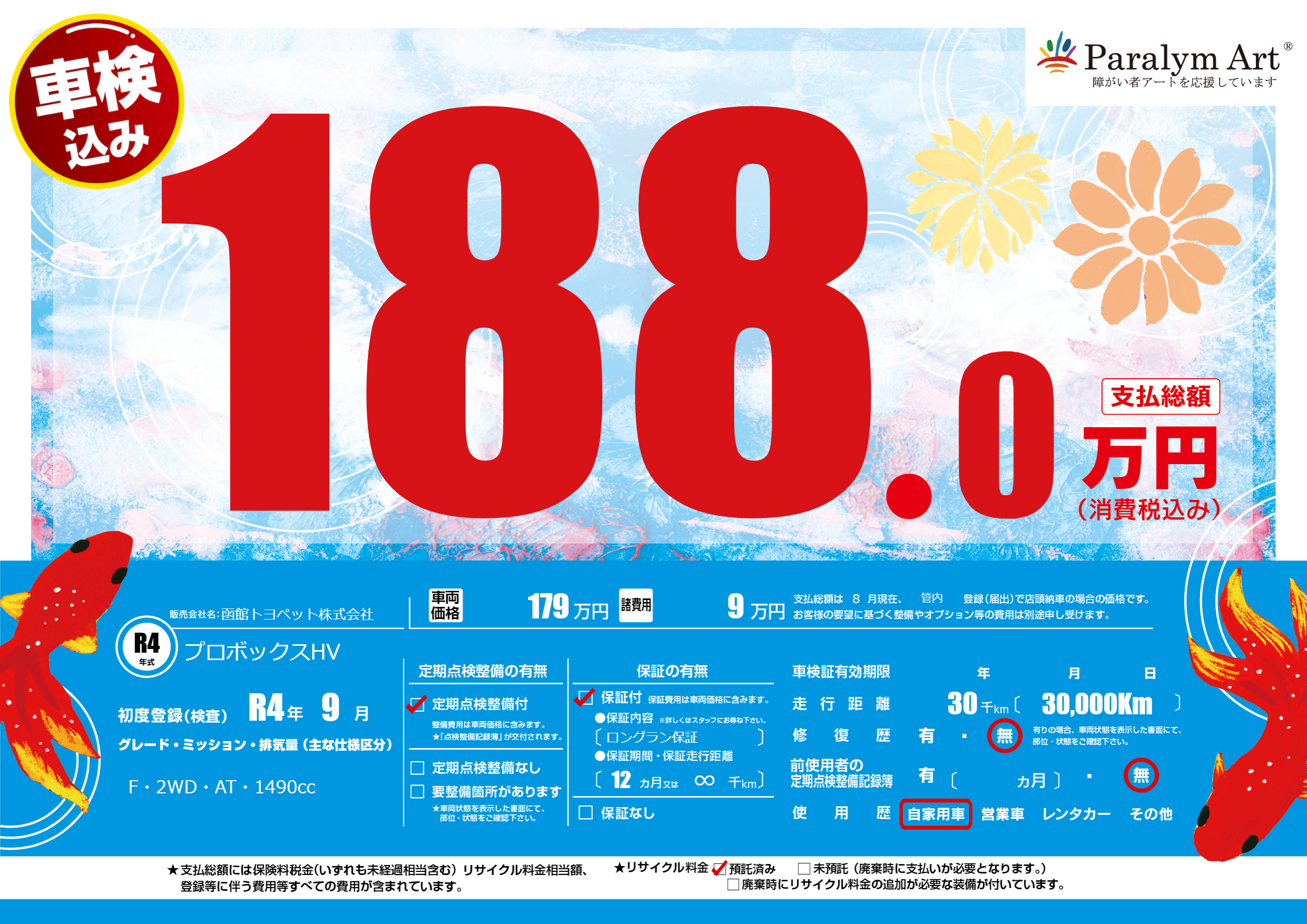 | 走行キロ | 3万km | 初年度登録 | R4年9月 |