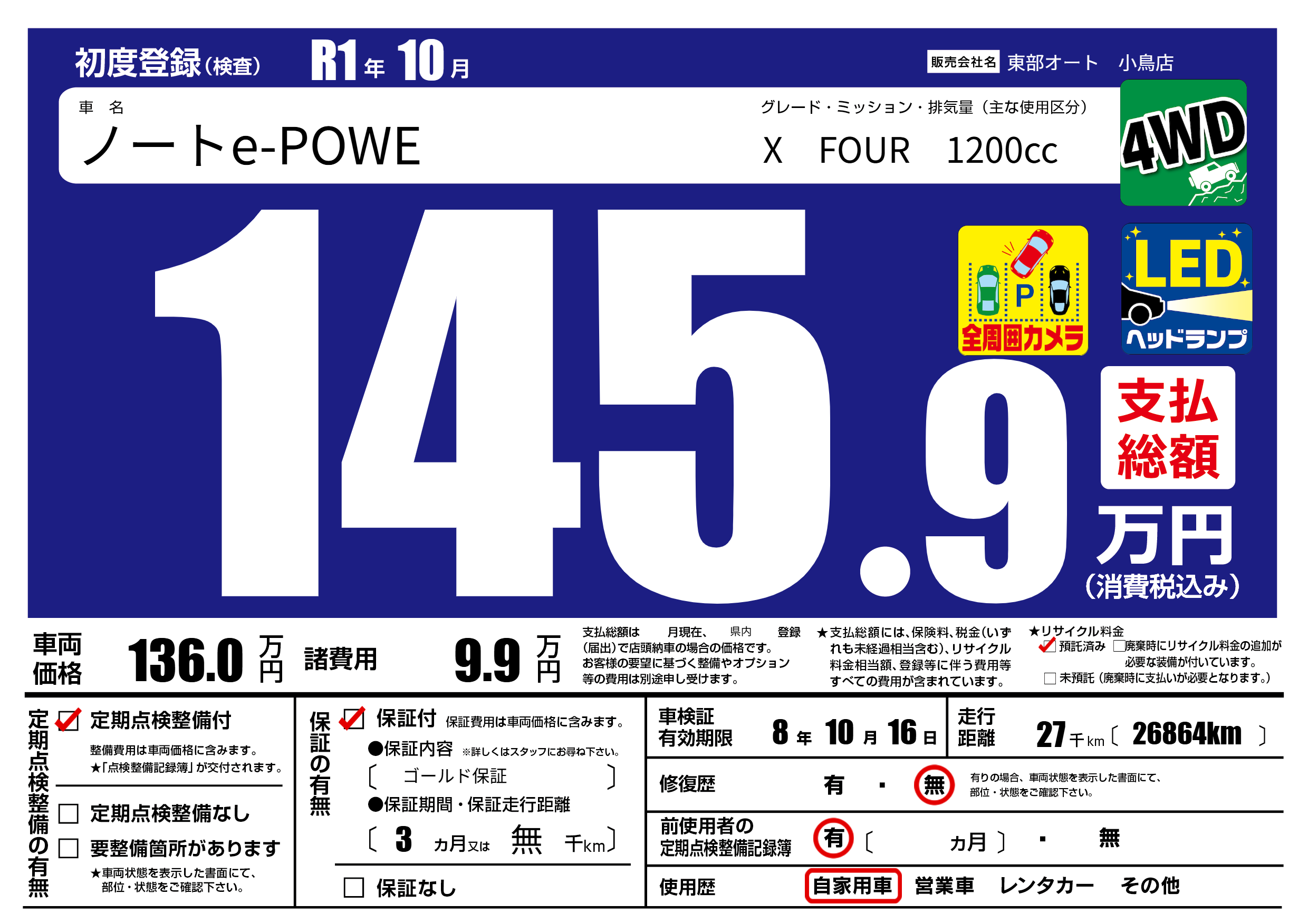 保証付き 保証内容( ゴールド保証) 3ヶ月または(無)千kmまで |