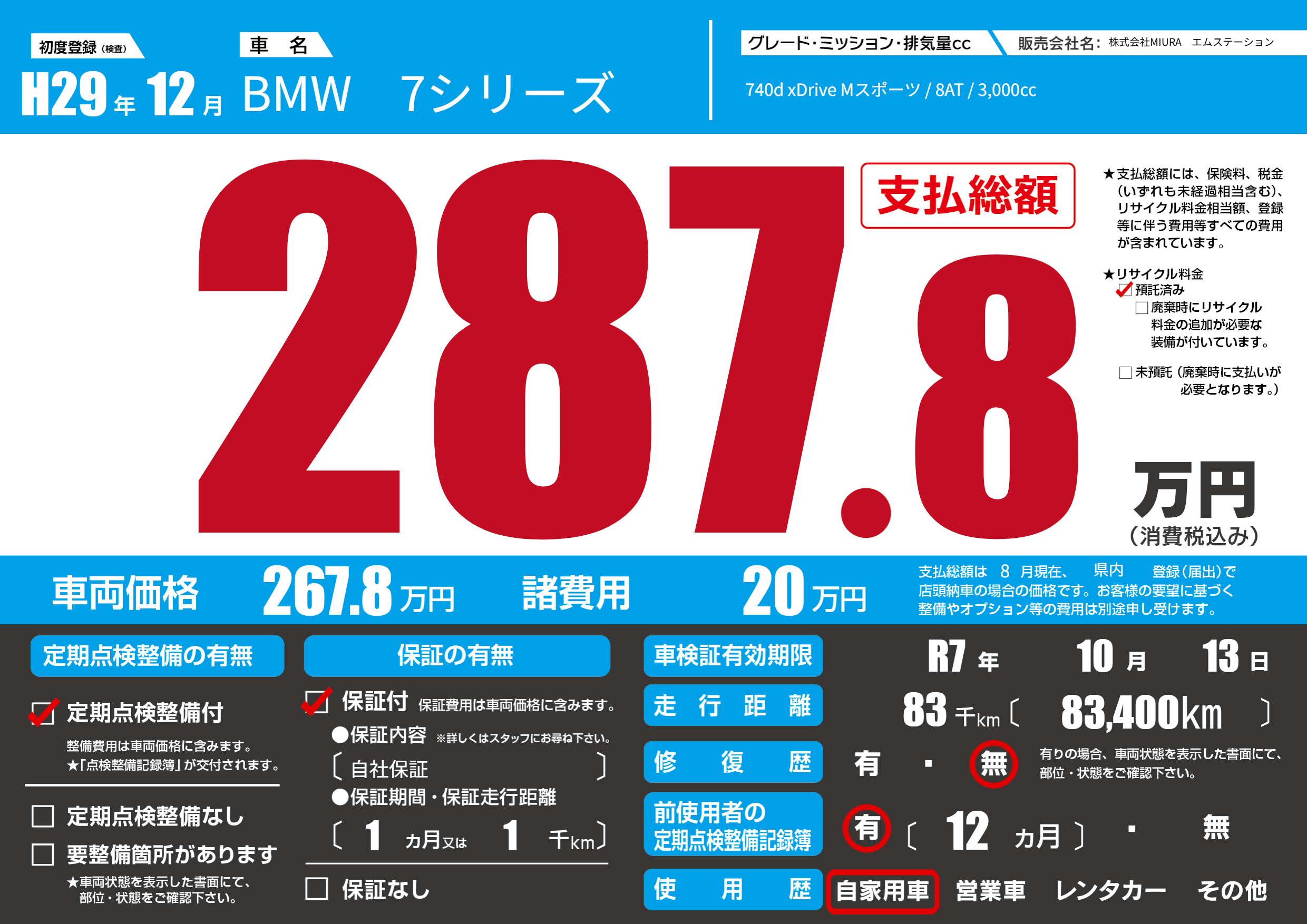 740d xDrive Mスポーツ / 8AT / 3,000㏄ |