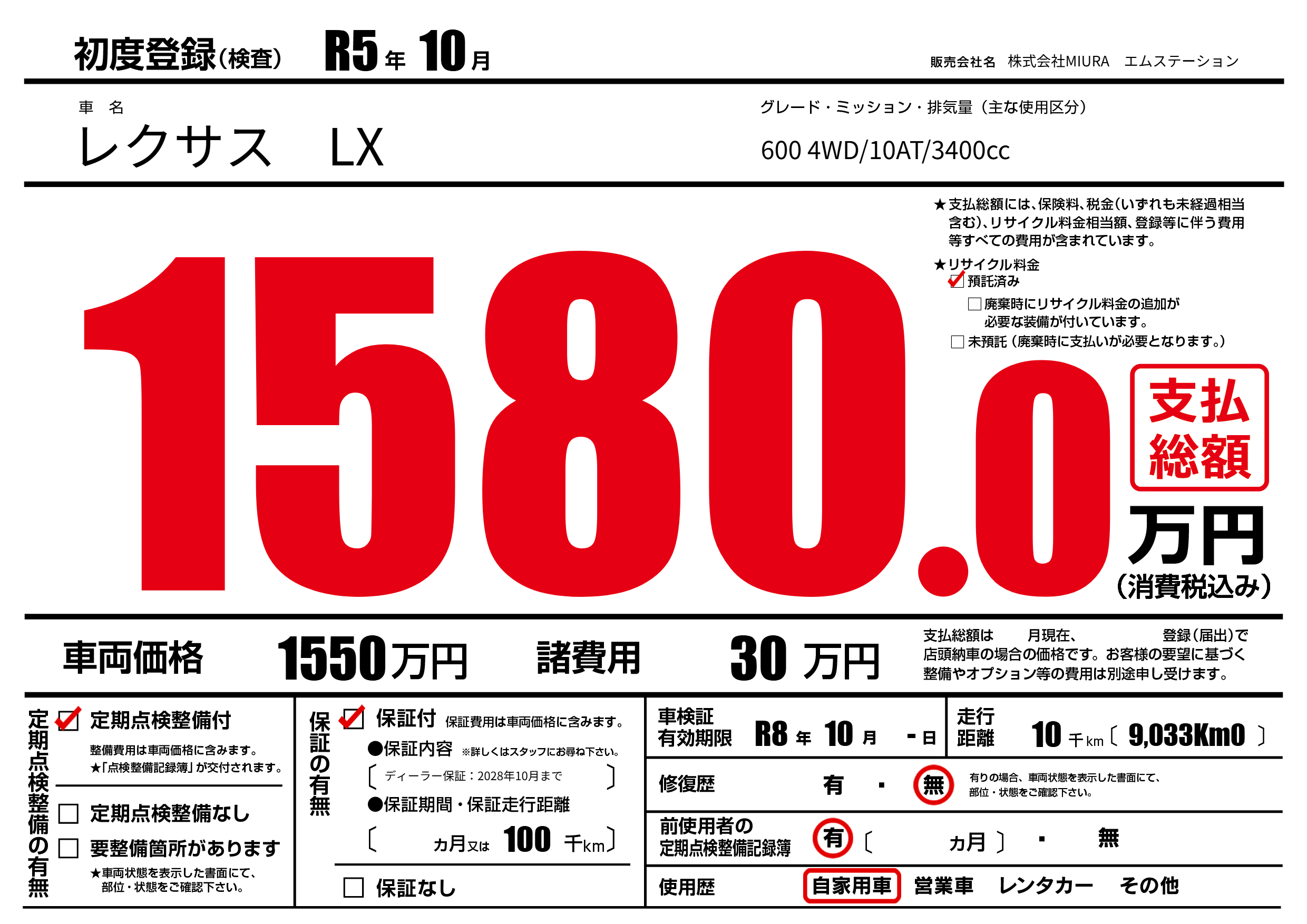 なし | 車検制限 | R8年10月-月 |
