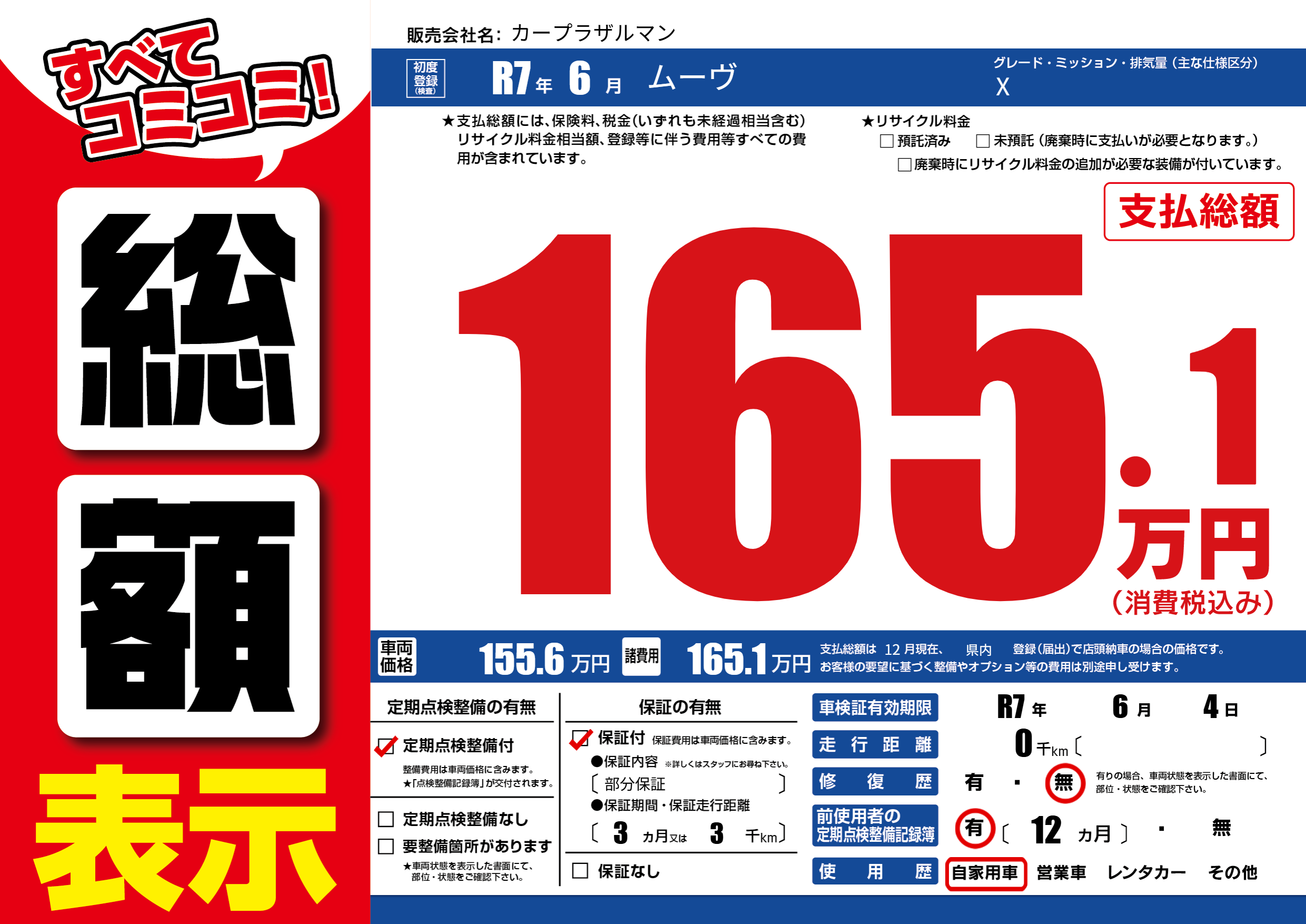 | 車名 | ムーヴ | グレード ミッション 排気量 |
