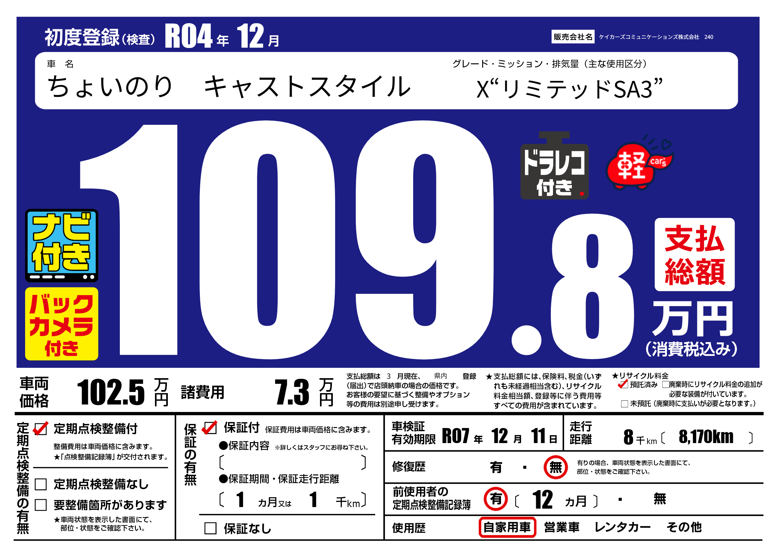 なし | 車検制限 | R07年12月11月 |
