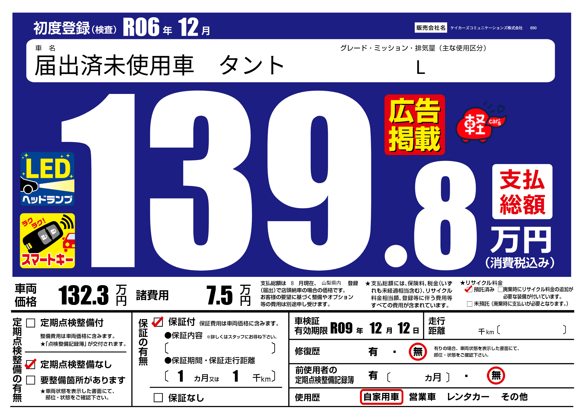 なし | 車検制限 | R09年12月12月 |