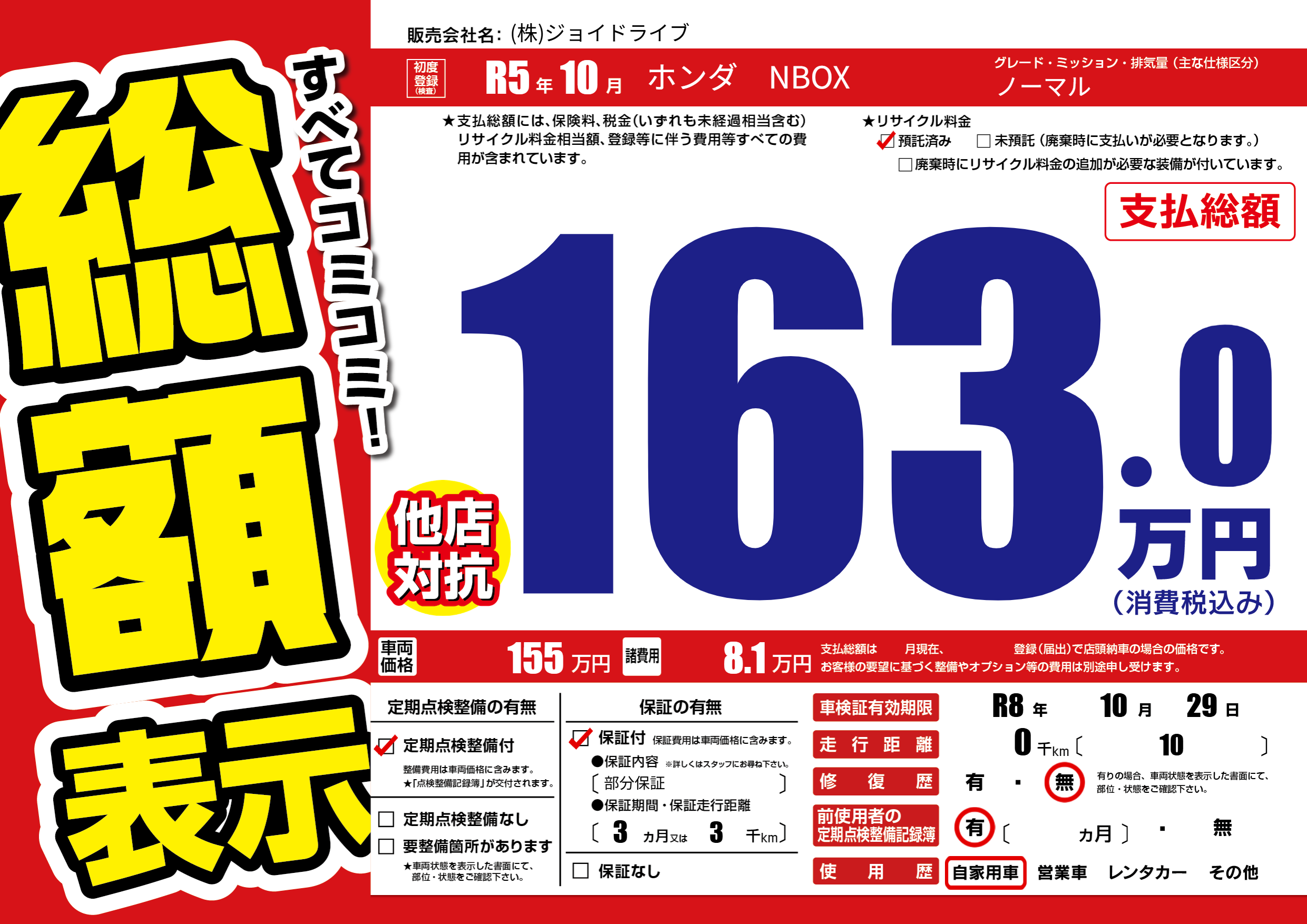 | 走行キロ | - | 初年度登録 | R5年10月 |