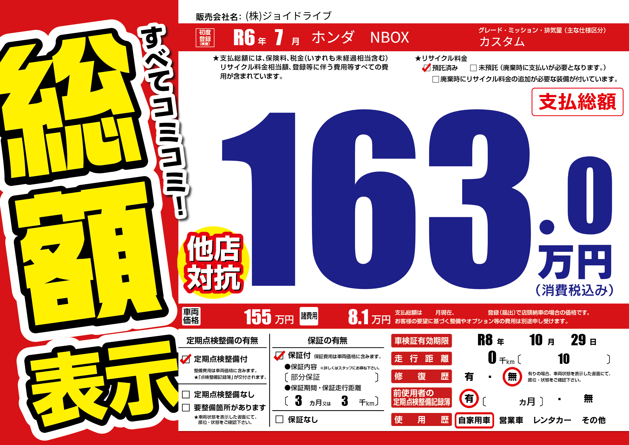 なし | 車検制限 | R8年10月29月 |