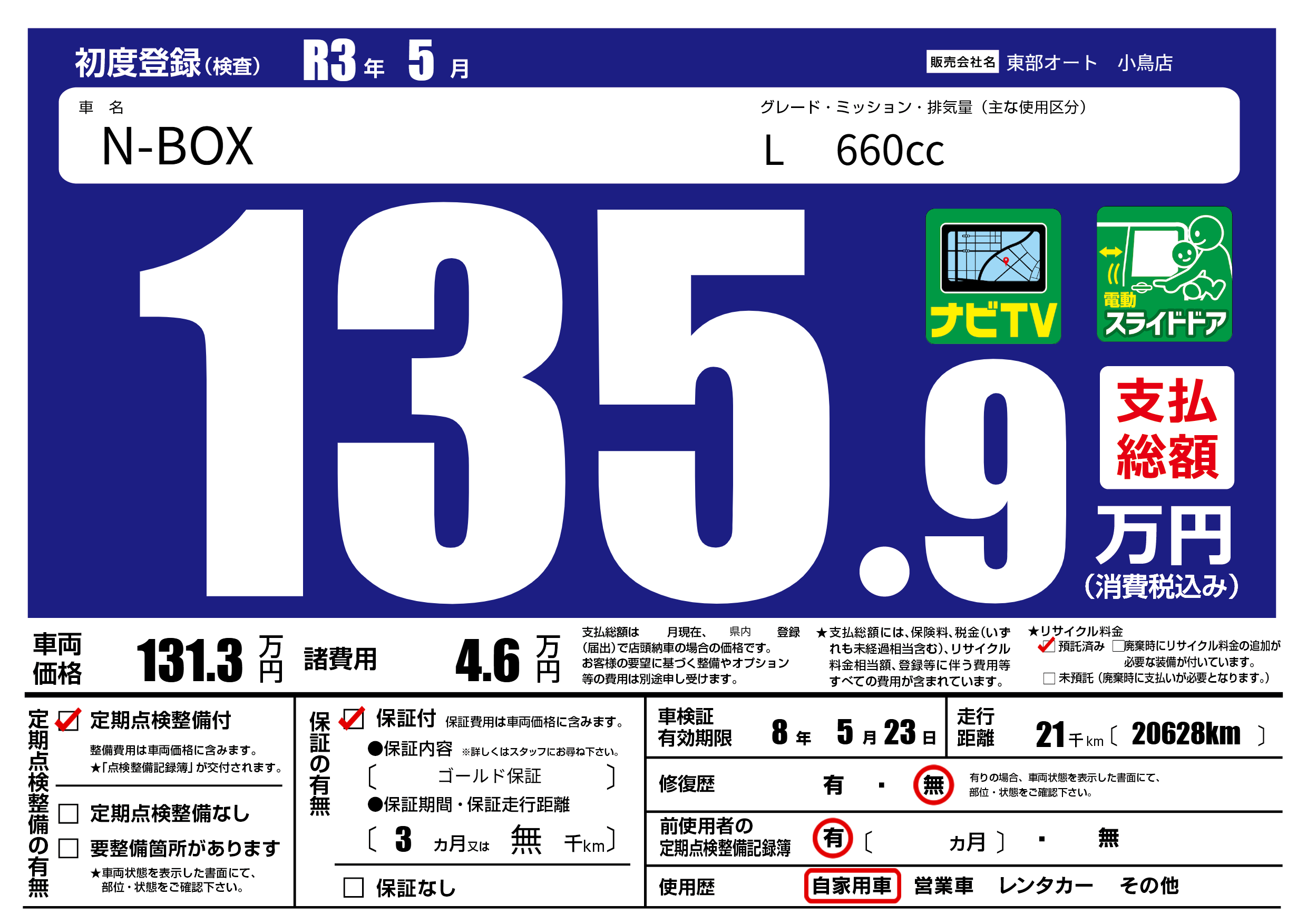保証付き 保証内容( ゴールド保証) 3ヶ月または(無)千kmまで |