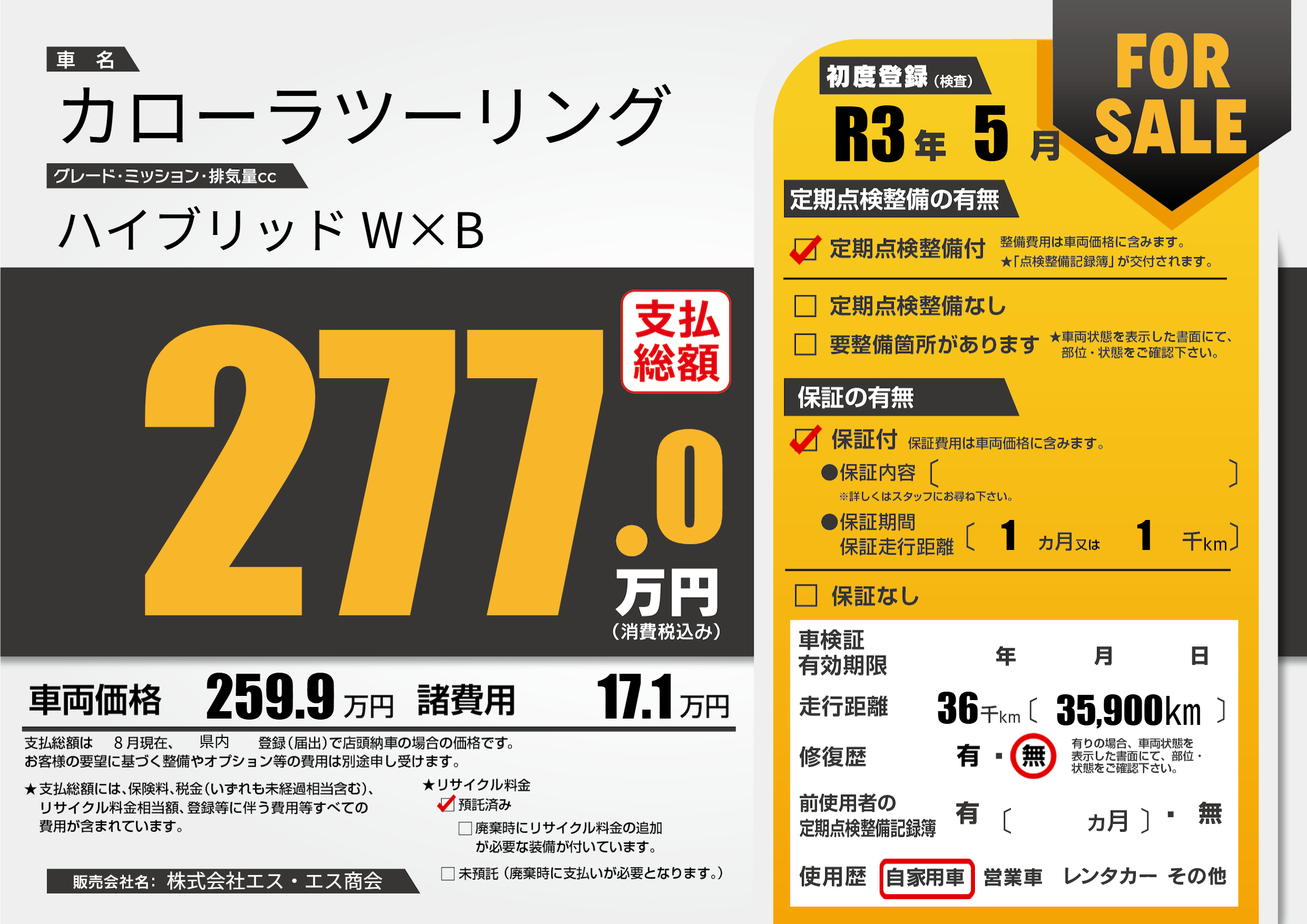 | 走行キロ | 3.6万km | 初年度登録 | R3年5月 |
