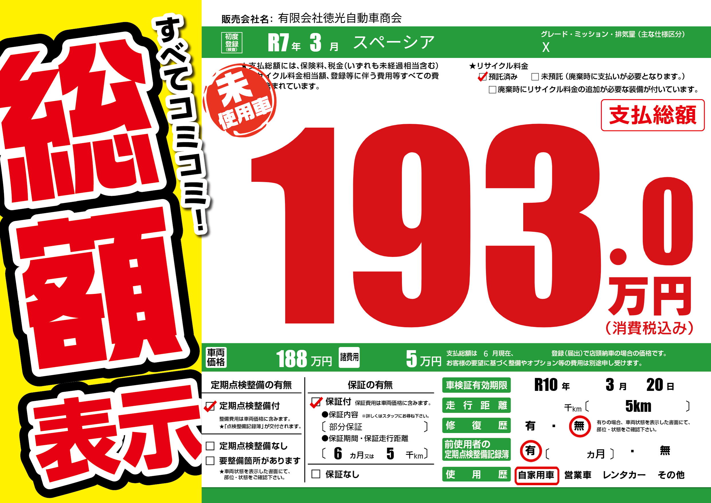 なし | 車検制限 | R10年3月20月 |