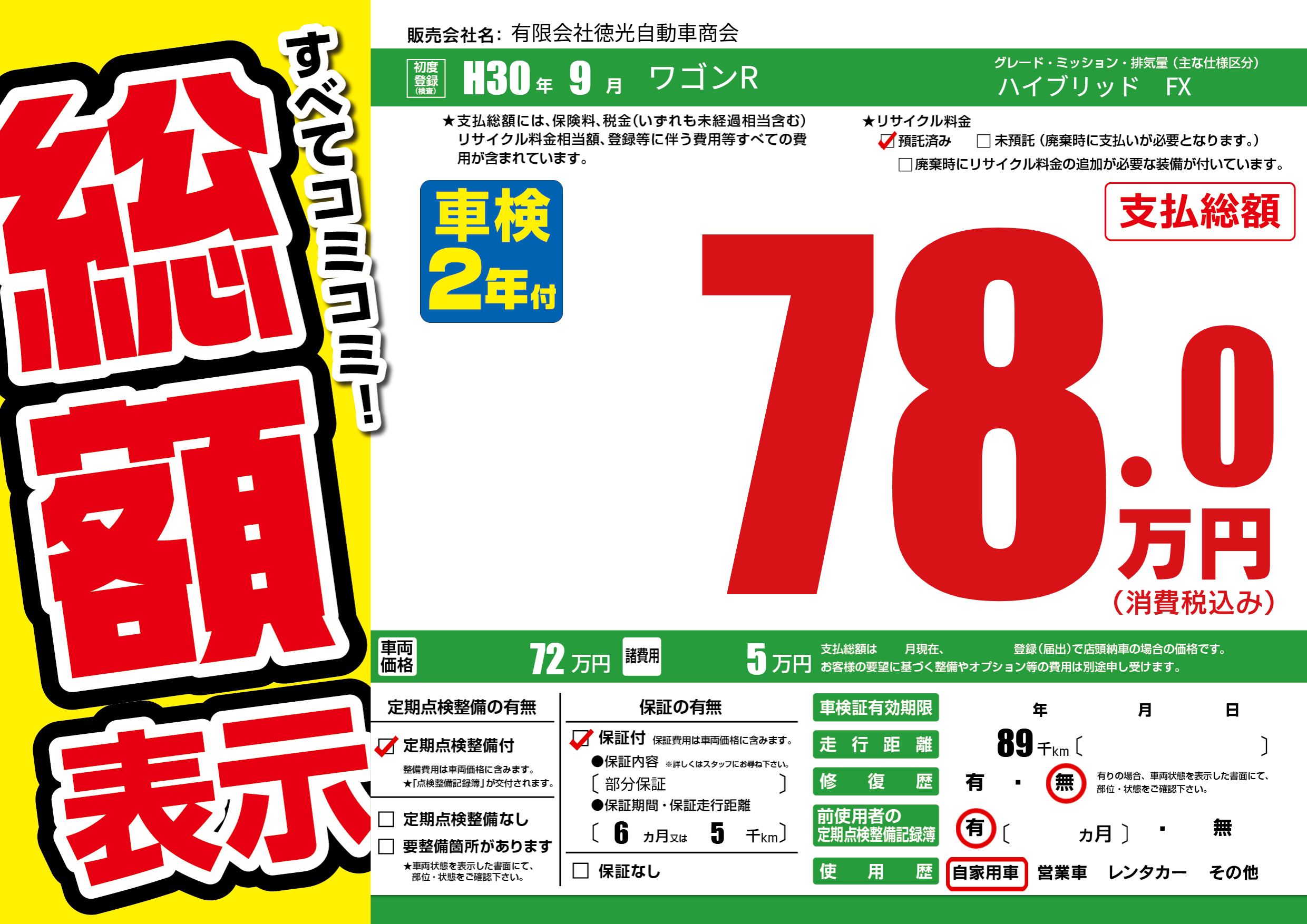 | 車名 | ワゴンR | グレード ミッション 排気量 |