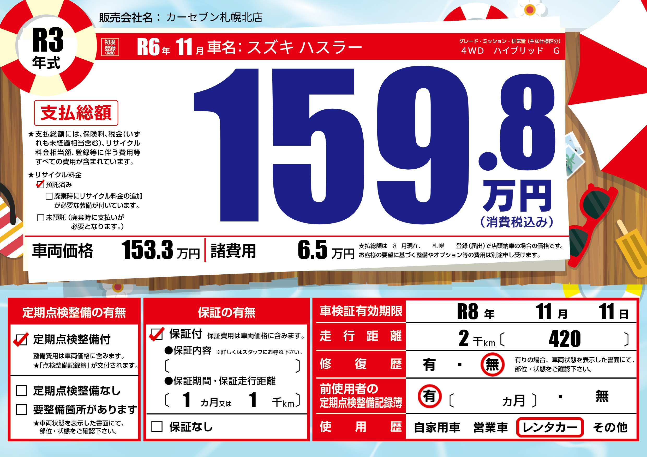 | 走行キロ | 0.2万km | 初年度登録 | R6年11月 |