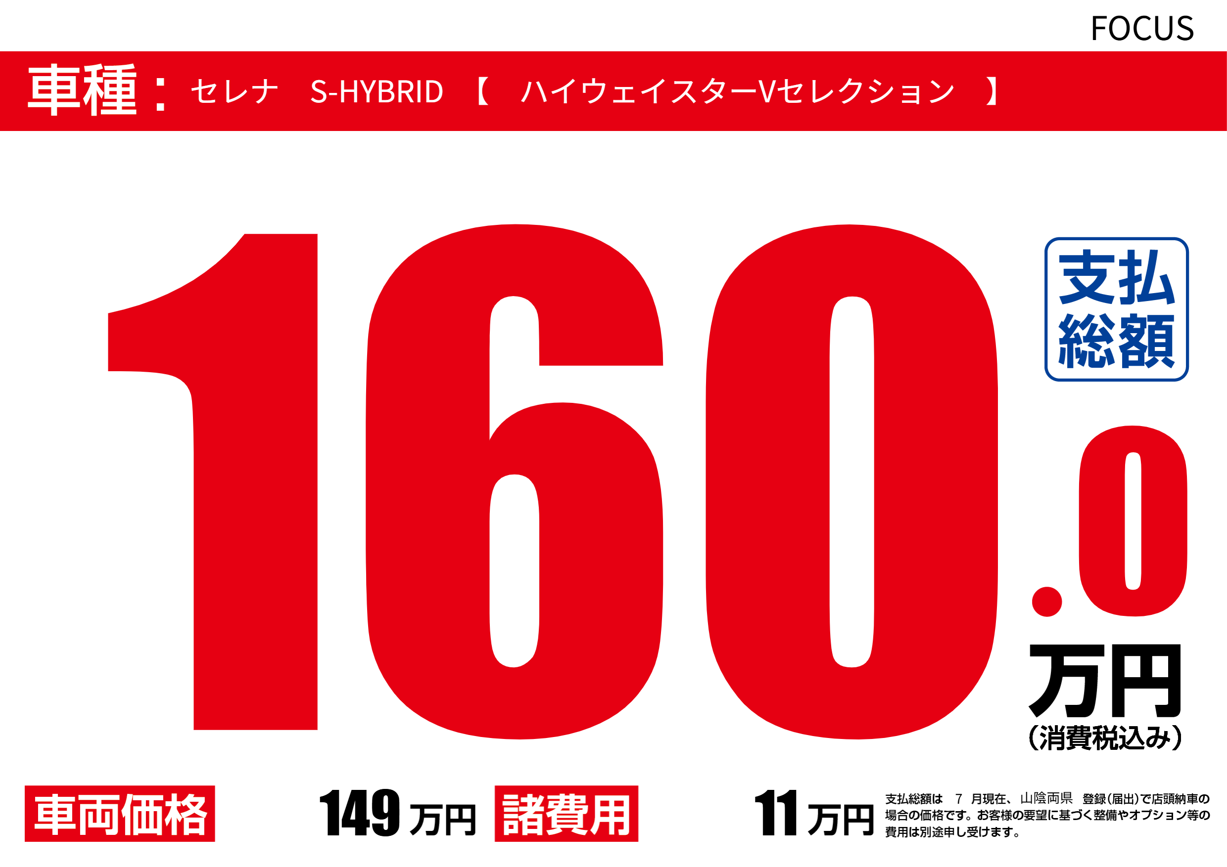 | 車名 | セレナ S-HYBRID 【 ハイウェイスターVセレクション 】 | グレード ミッション 排気量 |